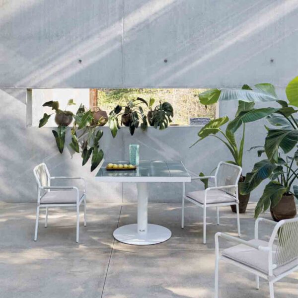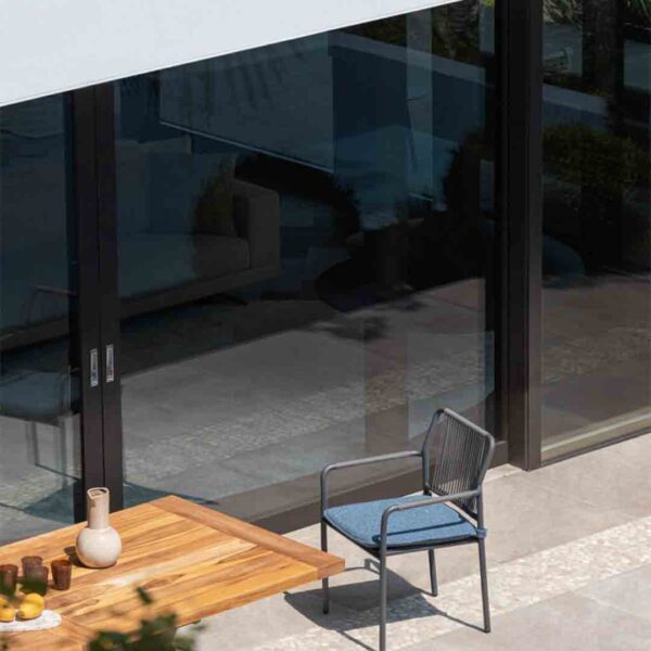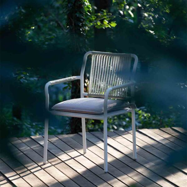 With a name that reflects its essence, the Air Dining Chair by Atmosphera brings lightness and fluidity to outdoor dining. Featuring a slim yet sturdy powder-coated aluminium frame, it is wrapped in a refined synthetic rope weave that offers both support and aesthetic sophistication. The ergonomic shape and optional seat cushion ensure long-lasting comfort without compromising on style.