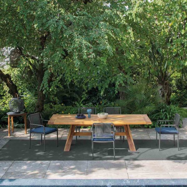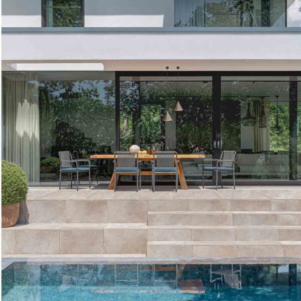 Perfect for terraces, resorts, or poolside restaurants that require durable design with a breezy, modern look.
