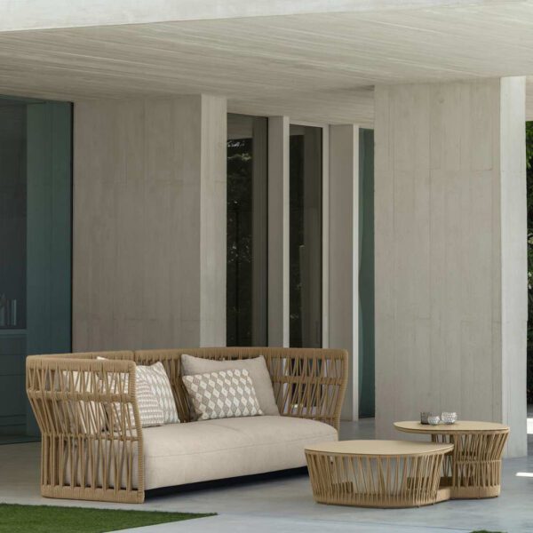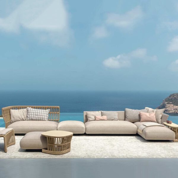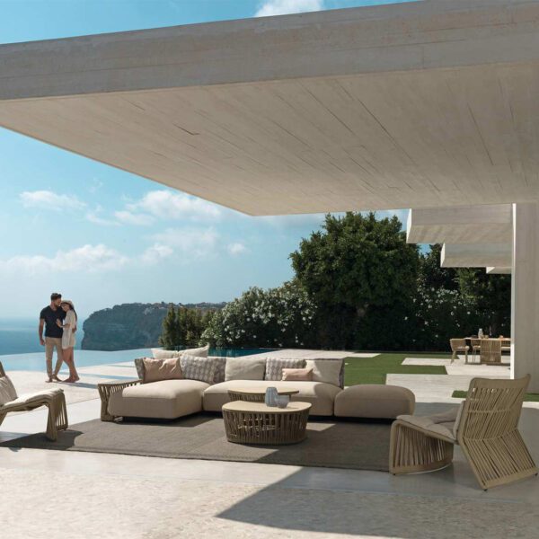 The Cliff sofa by Talenti is a bold design piece that redefines outdoor living. Featuring a sculptural hand-woven rope backrest and a sturdy aluminium frame, it merges artistic expression with practical comfort. Its geometric structure allows for modular compositions, while the plush cushions provide exceptional relaxation. Ideal for hotels, resorts, and premium outdoor lounges with a distinctive aesthetic.