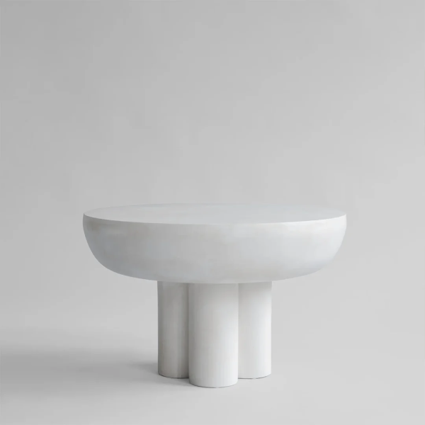 Το Crown Table, Tall από την 101 Copenhagen (designers Kristian Sofus Hansen & Tommy Hyldahl) αποτελεί τολμηρή έκφραση Brutalist αισθητικής. Κατασκευασμένο ως ένα ενιαίο γλυπτικό κομμάτι, διαθέτει κυκλική επιφάνεια που στηρίζεται σε τέσσερα κυλινδρικά πόδια, δημιουργώντας την εντύπωση ενός “αιωρούμενου” τραπεζιού