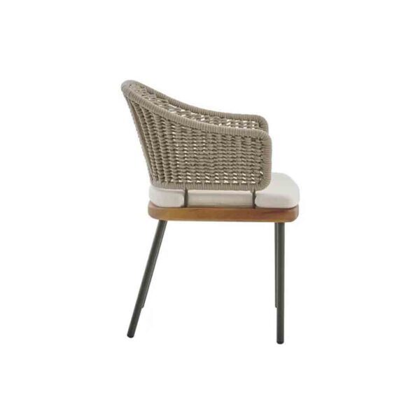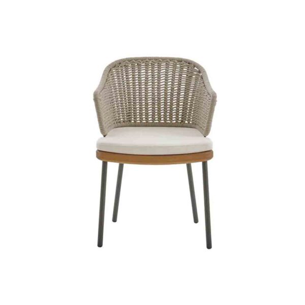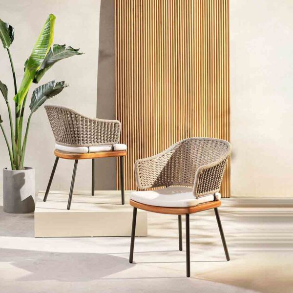 The Iona Outdoor chair by Parla reflects timeless simplicity and honest craftsmanship, designed specifically for demanding hospitality environments. Crafted from solid iroko wood, it features a gently curved backrest and seat cushion in weatherproof fabric, providing both comfort and durability. Its minimalist lines and natural finish make it an ideal choice for outdoor dining spaces seeking a refined yet relaxed aesthetic.