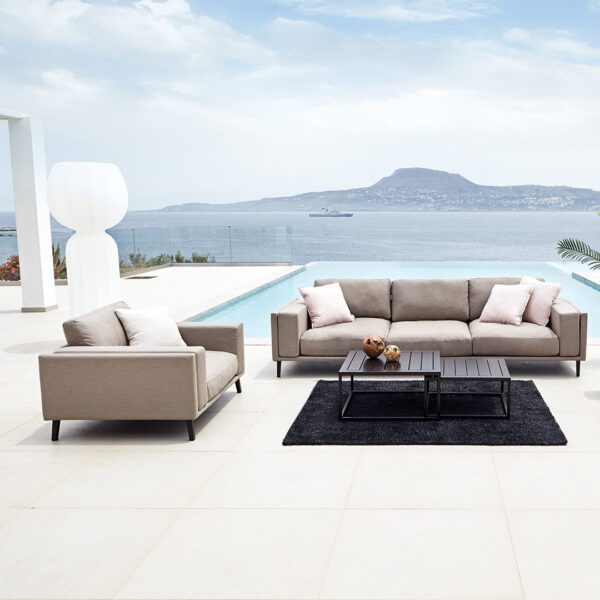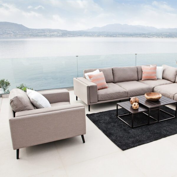 The LAZY Lounge Armchair brings relaxed elegance to modern outdoor living. Crafted with a sturdy aluminium frame and upholstered in premium outdoor fabric, LAZY is designed for year-round durability and comfort.
