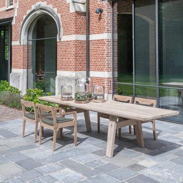 The Mia outdoor table exudes a sense of understated elegance through its clean design and warm natural teak wood. With sturdy construction and simple lines, Mia provides a welcoming and functional space for dining and relaxation in any outdoor setting.