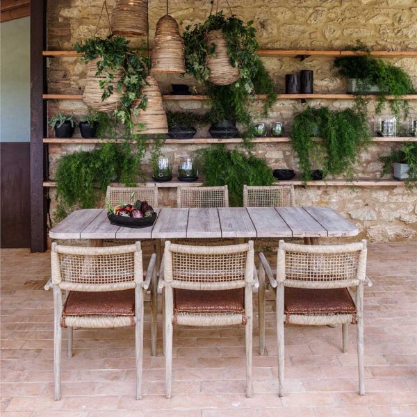The Mieke dining table radiates warmth and natural beauty through its premium teak surface. Its organic design captures the essence of nature, blending simplicity with elegance. Every detail highlights craftsmanship and the tactile presence of natural materials, creating a space that invites moments of enjoyment and connection.