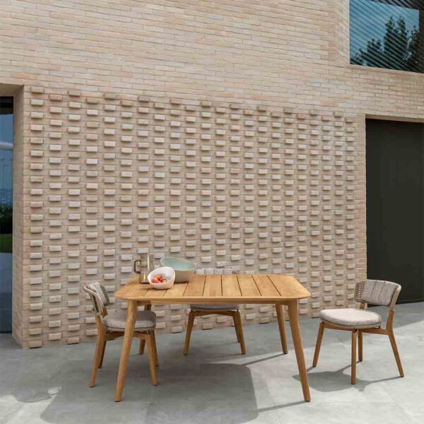 The 260×110 dining table from the Moon Teak collection is the largest of the entire collection. The elegance of wood, key element of the entire line, characterise this table that can seat up to 10 people.