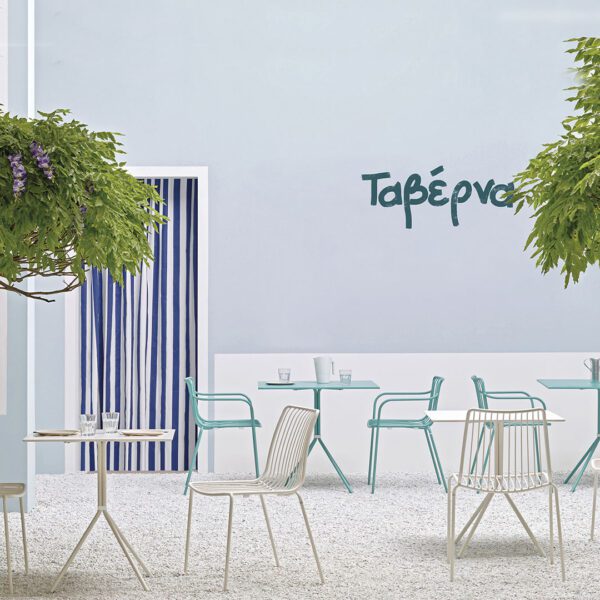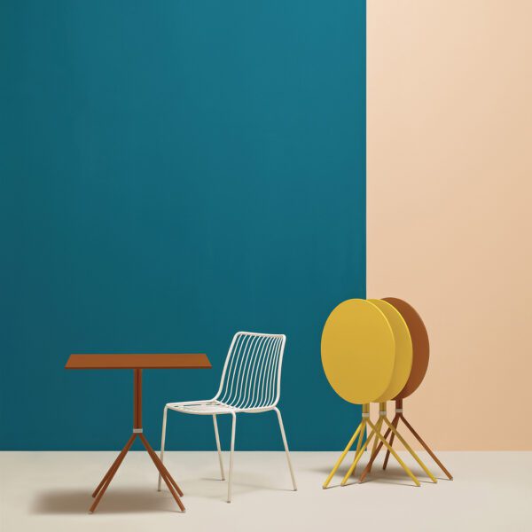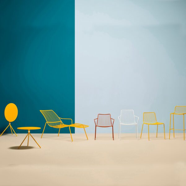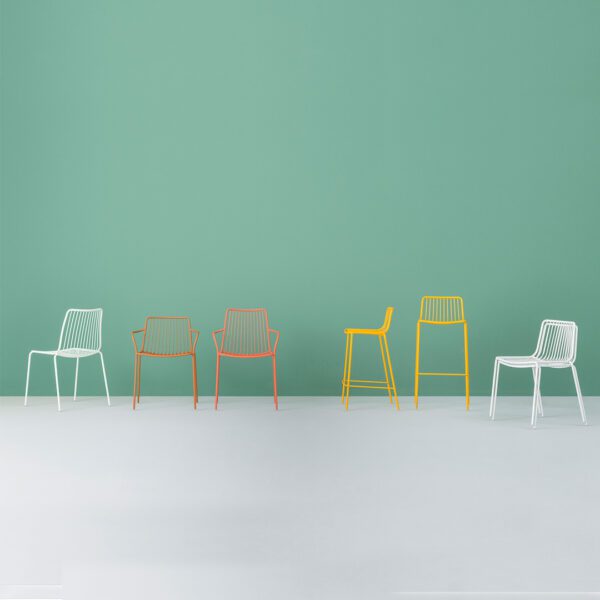 Nolita is a collection of outdoor seating inspired by Pedrali’s historic metal garden chairs from the 1960s. Made entirely of powder-coated steel, Nolita is durable, lightweight, and designed to withstand outdoor conditions with elegance and ease. Its minimal design and open-frame structure offer a bright, airy feel—perfect for terraces, poolside lounges, and alfresco dining areas.