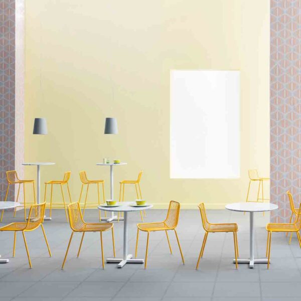The Nolita Bar Stool by Pedrali is a modern reinterpretation of classic 1960s patio chairs, combining retro aesthetics with contemporary materials. Designed by CMP Design, this stool features a durable powder-coated steel frame, ensuring comfort and longevity. Its stackable design and weather-resistant materials make it ideal for both indoor and outdoor hospitality settings.