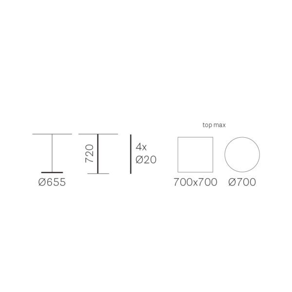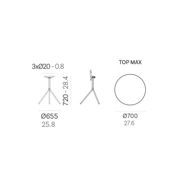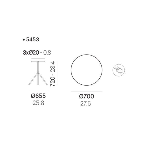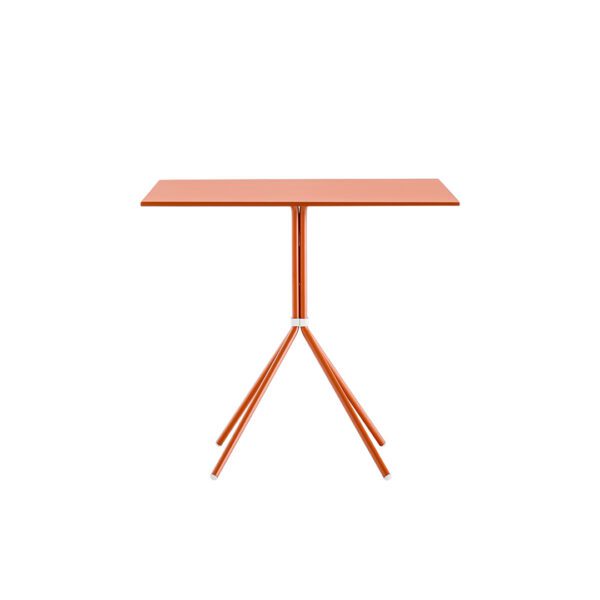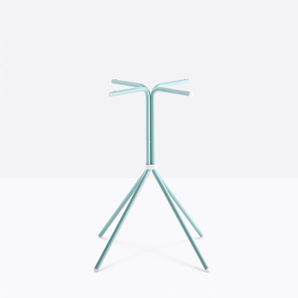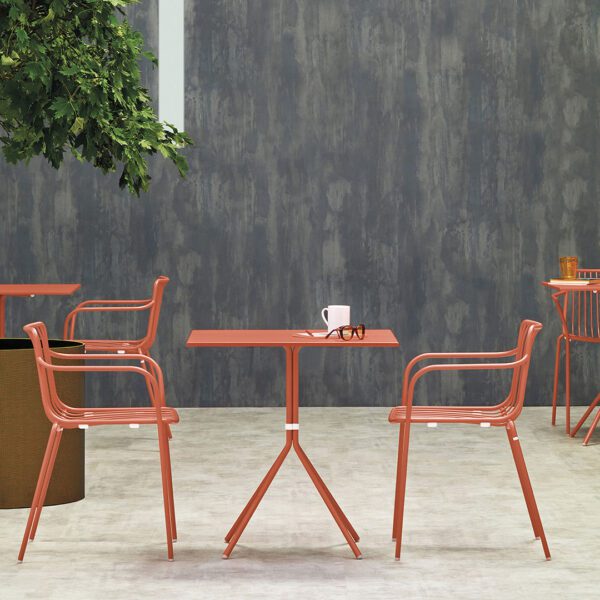 Nolita table collection, thanks to its summery and joyful character, is conceived for outdoor convivial and relaxing moments. Table with folding top and three steel spokes available combined with round tops of different sizes and finishes.