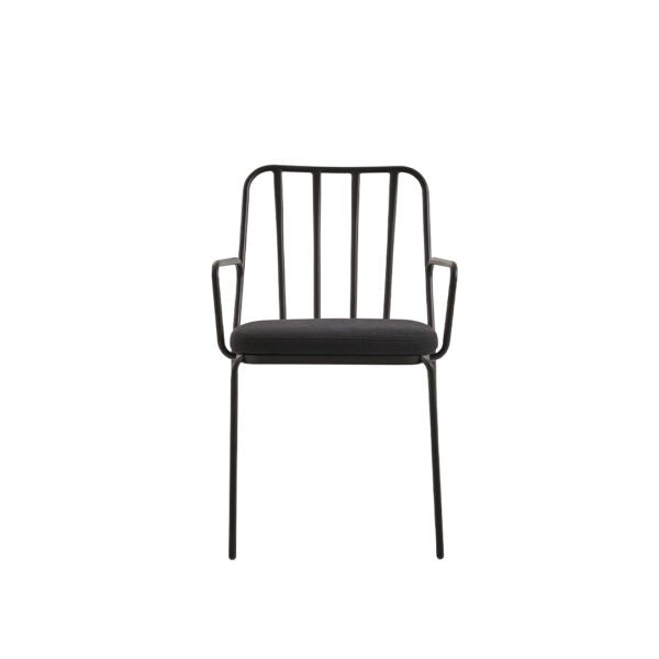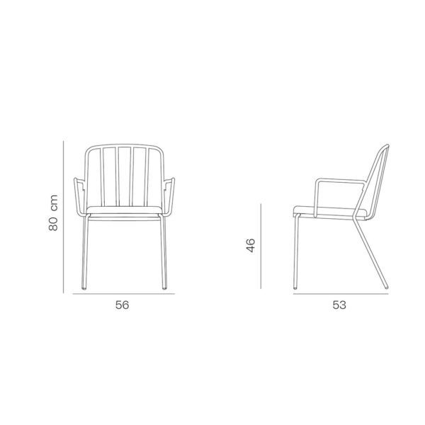 The Palm Outdoor chair is the open-air version of Parla’s refined indoor classic. Designed to withstand the demands of hospitality exteriors without compromising on comfort or aesthetics, it features a metal frame — naturally weather-resistant — and an upholstered seat cushion covered in outdoor-grade fabric.