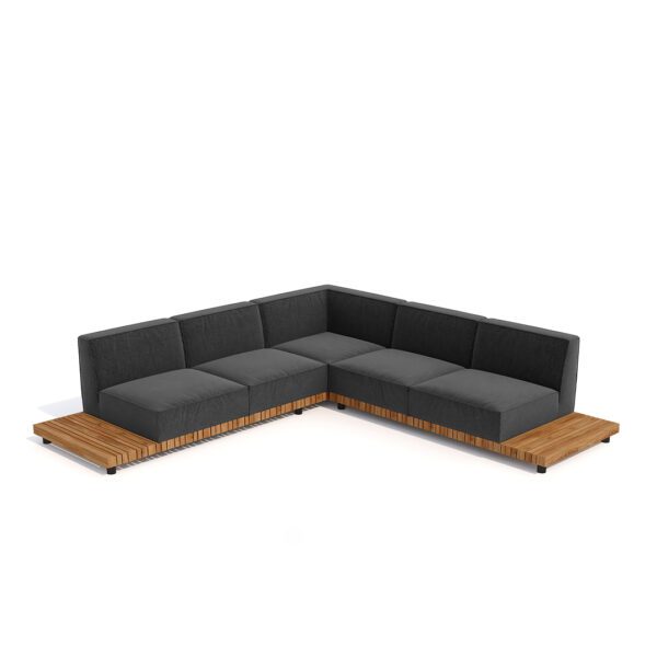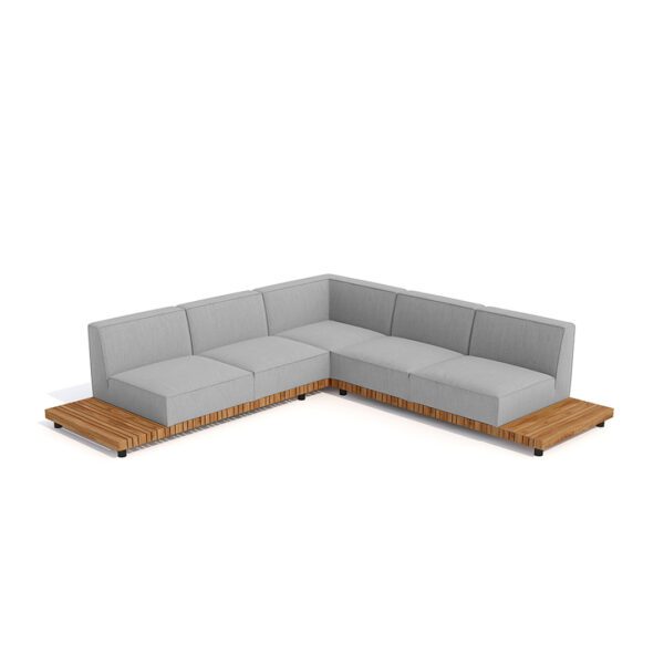 The Touch corner sofa is a modular solution tailored for hospitality environments. Built with a solid natural teak base and upholstered in high-performance outdoor fabric, it’s engineered to withstand the demands of professional outdoor use. Whether placed in a hotel terrace or a resort patio, its clean lines and adaptable form allow for versatile configurations without compromising on style. The Touch sofa elevates any outdoor hospitality setting with refined functionality and enduring comfort.