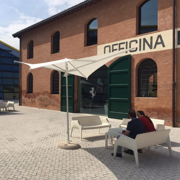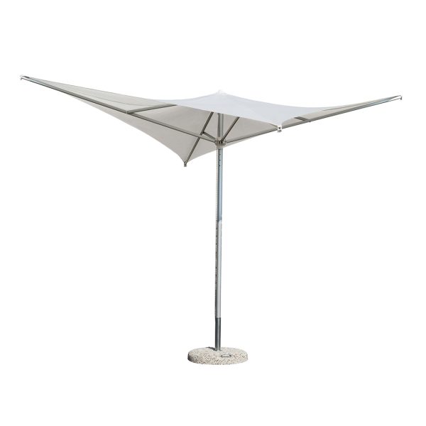 From the harmonic fusion between a parasol and a sail, a synergy between material strength and lightness of form, takes shape. A unique item to enhance your outdoor environment.