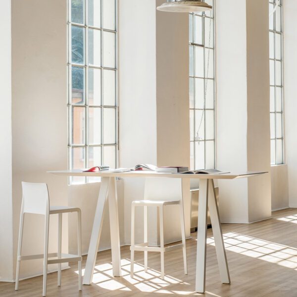 The Volt 678 Bar Stool by Pedrali, designed by Claudio Dondoli and Marco Pocci, embodies a blend of modern aesthetics and functional design. Crafted using gas-assisted injection moulding, the stool is made from polypropylene reinforced with glass fibers, ensuring durability and strength. Its ergonomic shape and sleek lines make it suitable for various settings, including bars, restaurants, and cafés. The stool is also stackable, allowing for efficient storage.
