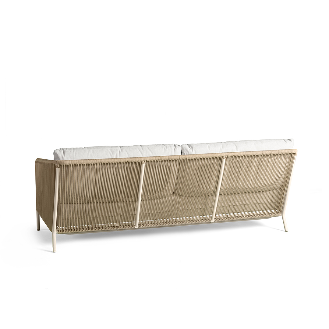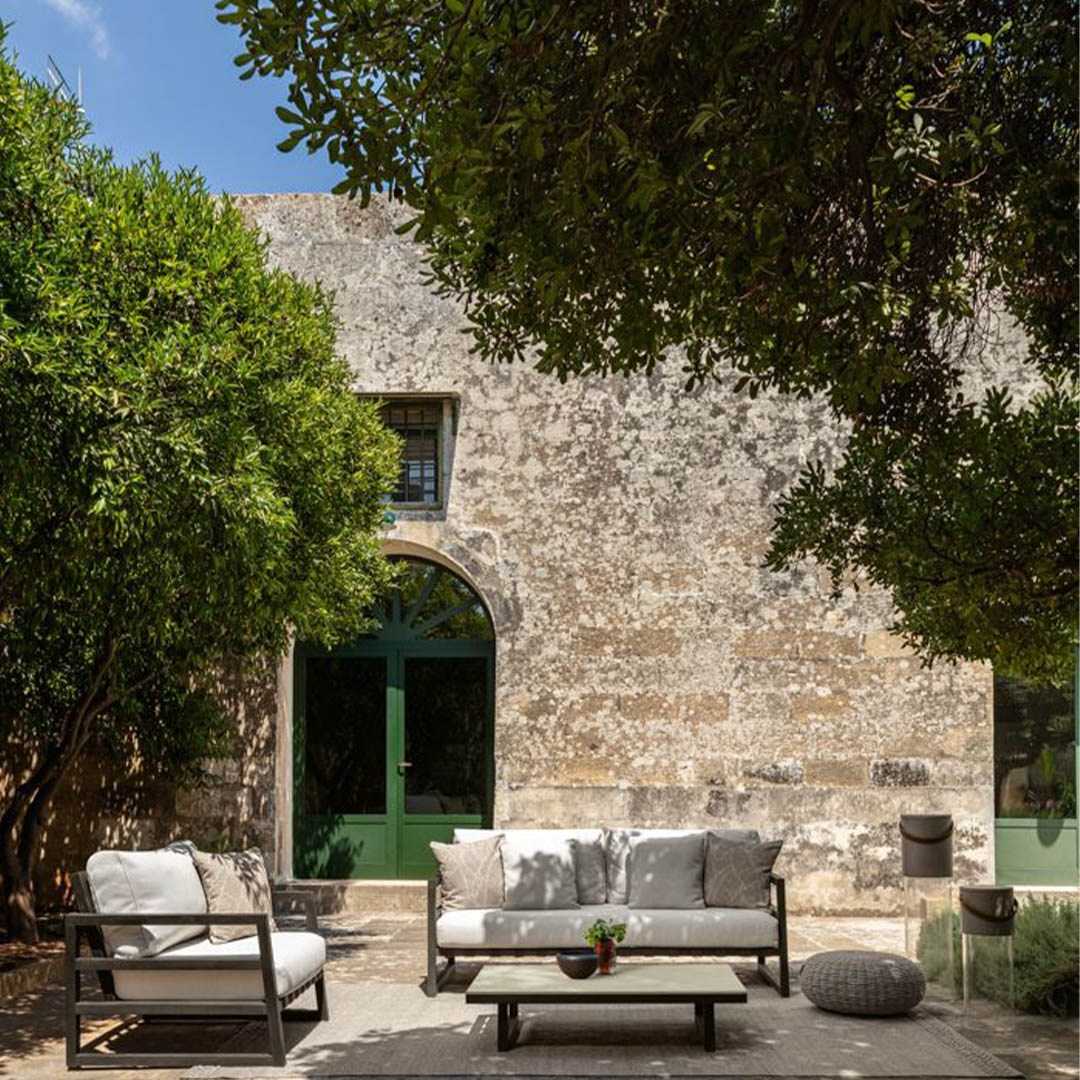 Τα υφασμάτινα μαξιλάρια και η επένδυση από αφρό που στεγνώνει γρήγορα προσφέρουν μέγιστη άνεση στον εξωτερικό σας χώρο, ενώ η στιβαρότητα και η απαλότητα των γραμμών την καθιστούν άνετη και αξιόπιστη.