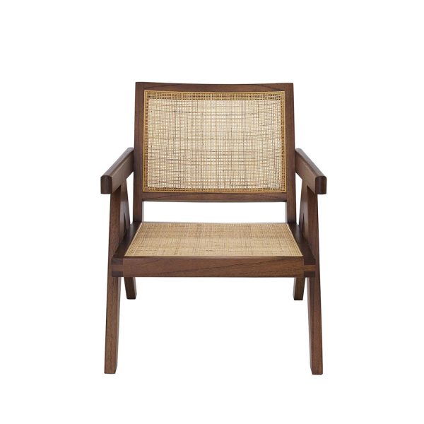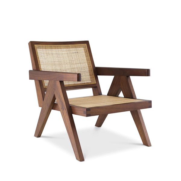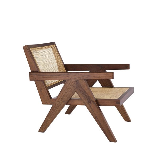 Κατασκευασμένη από μασίφ Ξύλο, αυτή η στιβαρή πολυθρόνα διαθέτει χαρακτηριστικά V-σχήματος πόδια, εμπνευσμένα από τον μινιμαλιστικό σχεδιασμό. Η χειροποίητη ψάθα από φυσικό ρατάν στην πλάτη και το κάθισμα προσθέτει υφή και αυθεντική δεξιοτεχνία. Οι λιτές γραμμές και τα διαχρονικά υλικά την καθιστούν ιδανική για οικιακούς και επαγγελματικούς χώρους, προσφέροντας οπτική ελαφρότητα και αντοχή στο χρόνο.