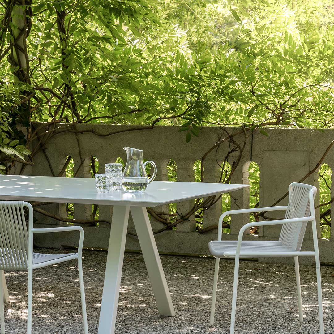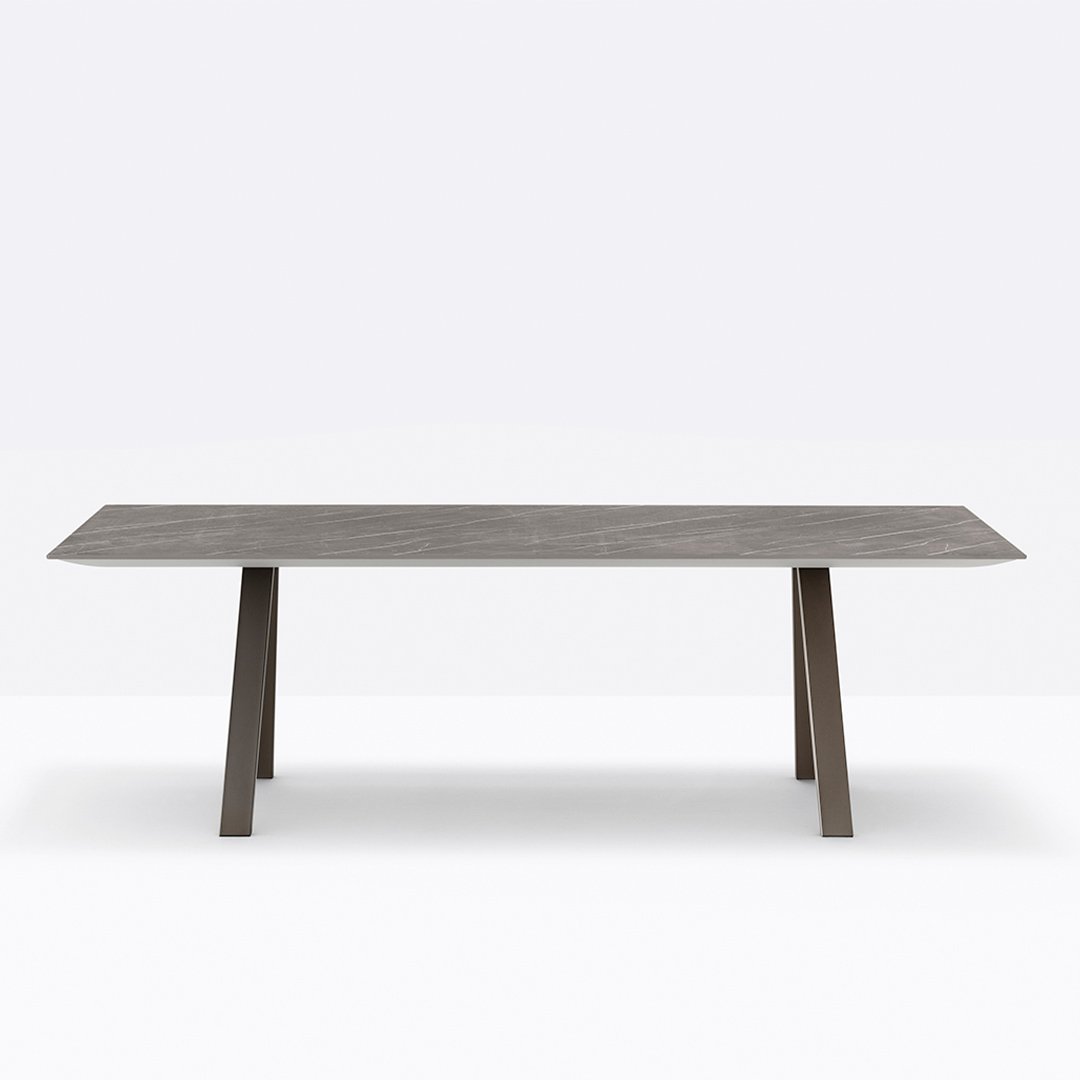 Το τραπέζι Arki είναι γραμμικό και αυστηρό από κατασκευαστική άποψη, αλλά ταυτόχρονα ευέλικτο και σχεδιασμένο για ποικίλες χρήσεις. Διαθέτει πόδια από ατσάλι σε μορφή τεσσάρων υποστηριγμάτων και επιφάνεια που στηρίζεται σε πλαίσιο από εξωθημένο αλουμίνιο.