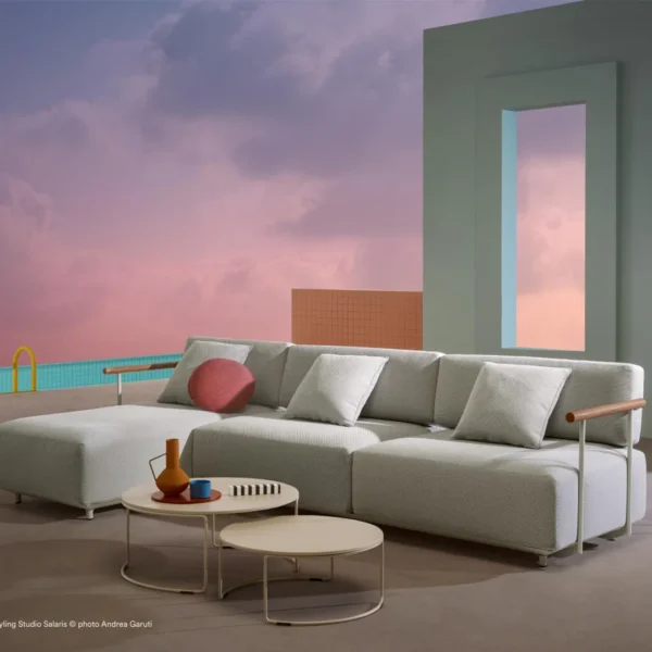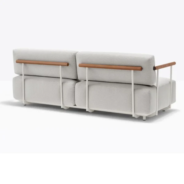 O Arki-Sofa είναι ένα σύστημα καθισμάτων lounge εξωτερικού χώρου που συνδυάζει την άνεση και τον κομψό σχεδιασμό ενός εσωτερικού καναπέ. Μέσω διαφορετικών modules, μπορεί να διαμορφωθεί σε πολλαπλές συνθέσεις, καλύπτοντας ανάγκες χώρου και εξατομίκευσης σε οικιακούς και contract χώρους. Ο καναπές διαθέτει επένδυση από αφρό πολυουρεθάνης με αδιάβροχη επένδυση, καλυμμένη με ύφασμα κατάλληλο για εξωτερικούς χώρους, διαθέσιμος με ή χωρίς μπράτσα, δεξιά ή αριστερά. Τα γεωμετρικά διαμορφωμένα, παχιά μαξιλάρια στηρίζονται σε ελαφρύ σκελετό με ελαστικές ζώνες. Το βαθύτερο και πιο φαρδύ κάθισμα ανυψώνεται από ανοξείδωτα πόδια, ενώ η πλάτη και τα μπράτσα από σωλήνα ατσαλιού τονίζονται από χαρακτηριστικές λεπτομέρειες από teak. Η αφαιρούμενη επένδυση διευκολύνει τον καθαρισμό και τη συντήρηση.