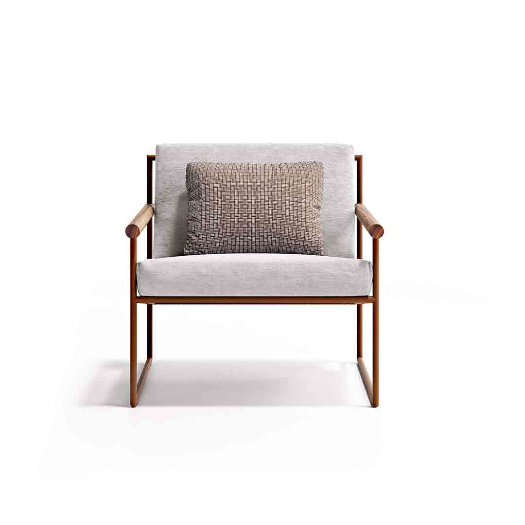 O Arki-Sofa είναι ένα σύστημα καθισμάτων lounge εξωτερικού χώρου που συνδυάζει την άνεση και τον κομψό σχεδιασμό ενός εσωτερικού καναπέ. Μέσω διαφορετικών modules, μπορεί να διαμορφωθεί σε πολλαπλές συνθέσεις, καλύπτοντας ανάγκες χώρου και εξατομίκευσης σε οικιακούς και contract χώρους. Ο καναπές διαθέτει επένδυση από αφρό πολυουρεθάνης με αδιάβροχη επένδυση, καλυμμένη με ύφασμα κατάλληλο για εξωτερικούς χώρους, διαθέσιμος με ή χωρίς μπράτσα, δεξιά ή αριστερά. Τα γεωμετρικά διαμορφωμένα, παχιά μαξιλάρια στηρίζονται σε ελαφρύ σκελετό με ελαστικές ζώνες. Το βαθύτερο και πιο φαρδύ κάθισμα ανυψώνεται από ανοξείδωτα πόδια, ενώ η πλάτη και τα μπράτσα από σωλήνα ατσαλιού τονίζονται από χαρακτηριστικές λεπτομέρειες από teak. Η αφαιρούμενη επένδυση διευκολύνει τον καθαρισμό και τη συντήρηση.