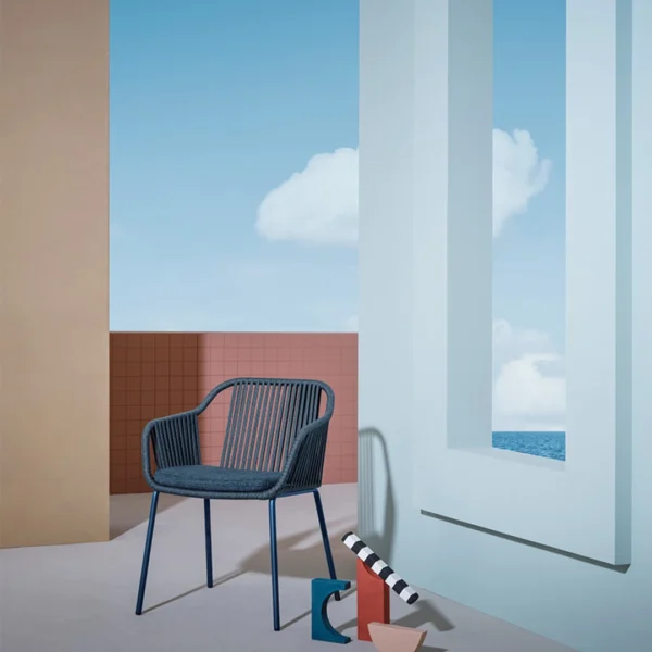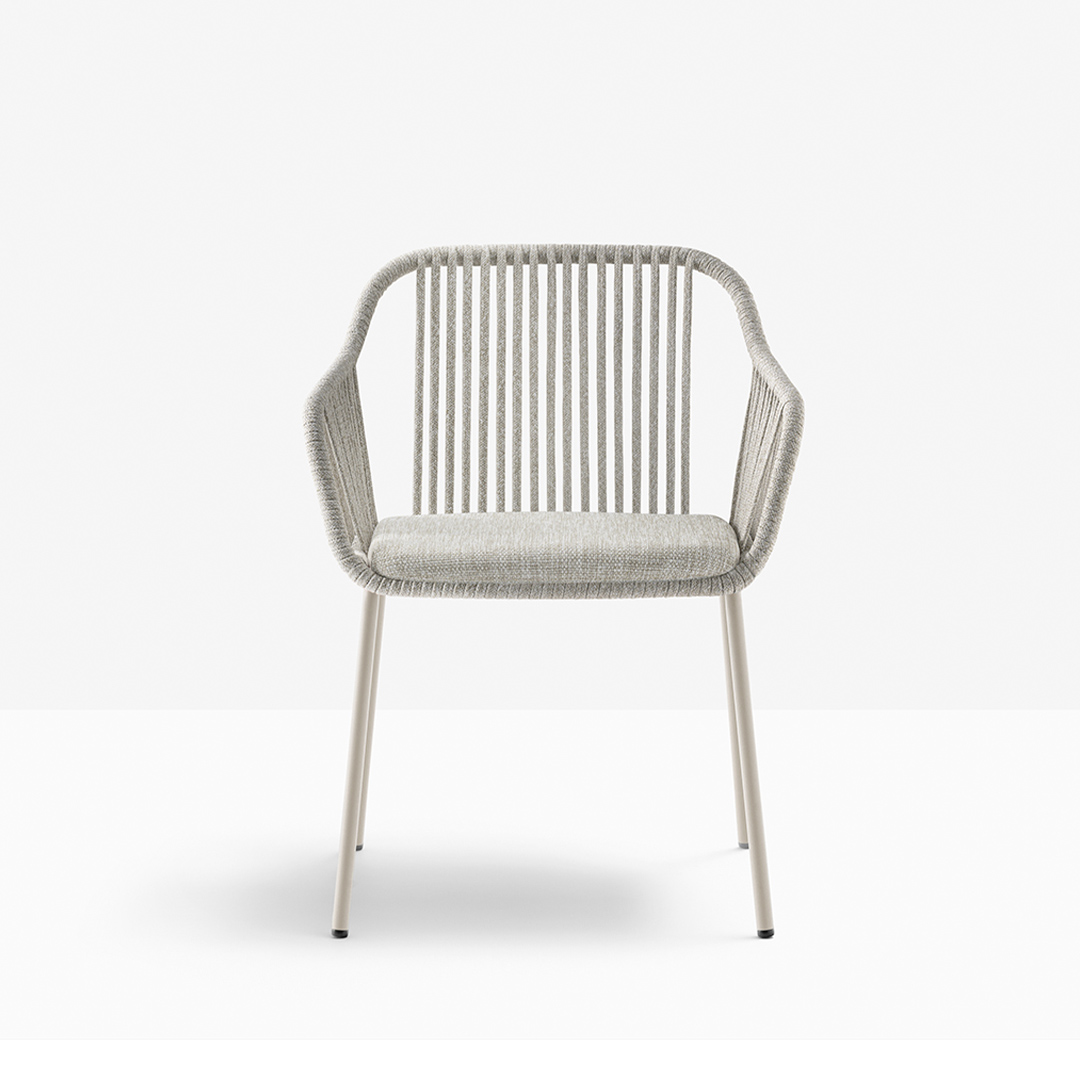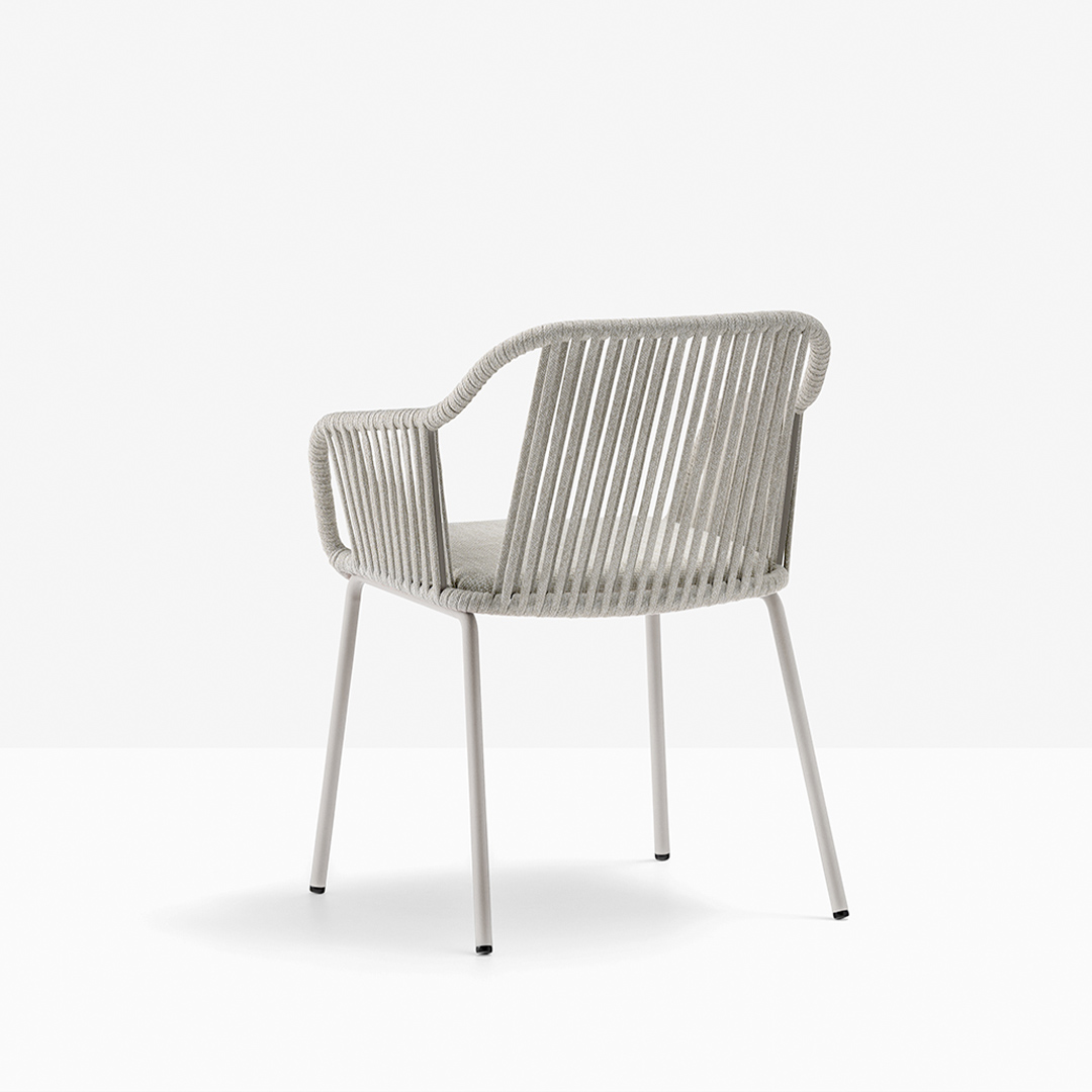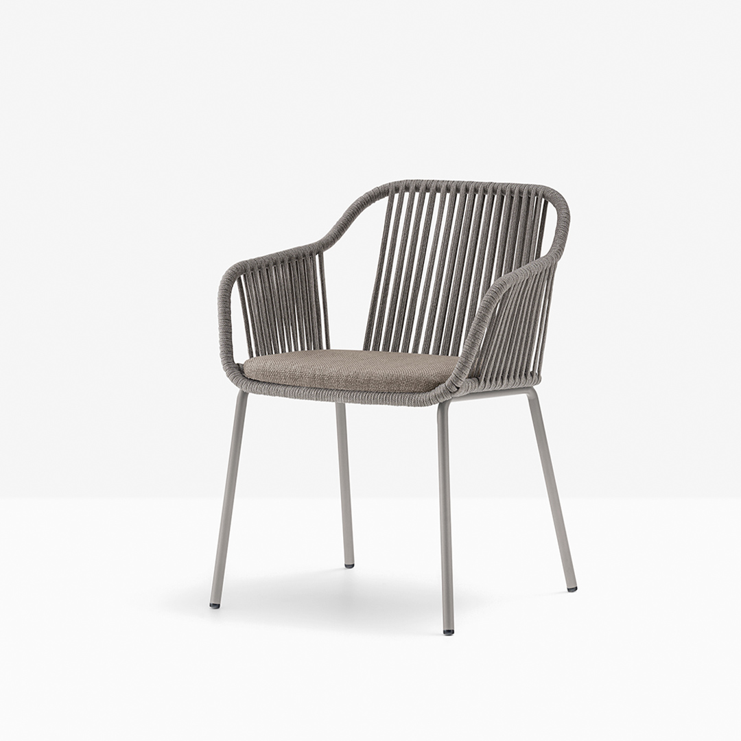 Η Babila Twist είναι η εξωτερική εκδοχή της εμβληματικής συλλογής Babila, σχεδιασμένη από τον Odo Fioravanti. Διαθέτει μεταλλικό σκελετό και χειροποίητα πλεγμένη πλάτη από κορδόνι πολυπροπυλενίου, που της προσδίδουν μια ανάλαφρη, αλλά έντονα χειροποίητη αισθητική. Το αφράτο μαξιλάρι καθίσματος προσφέρει υψηλή άνεση, ιδανική για εξωτερικούς χώρους φιλοξενίας.