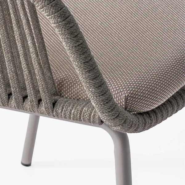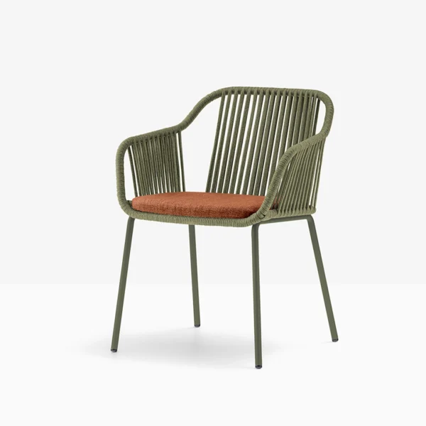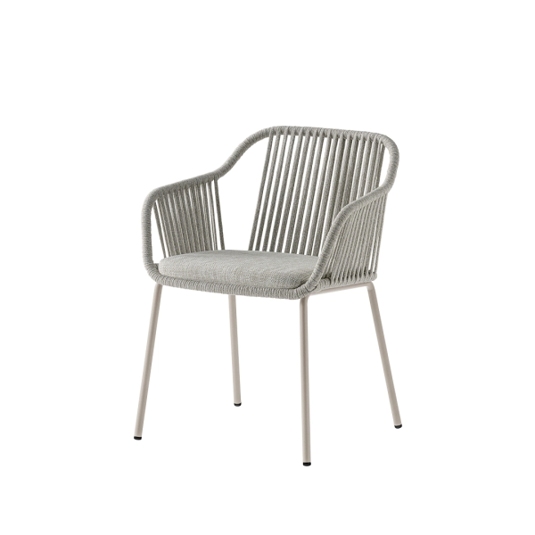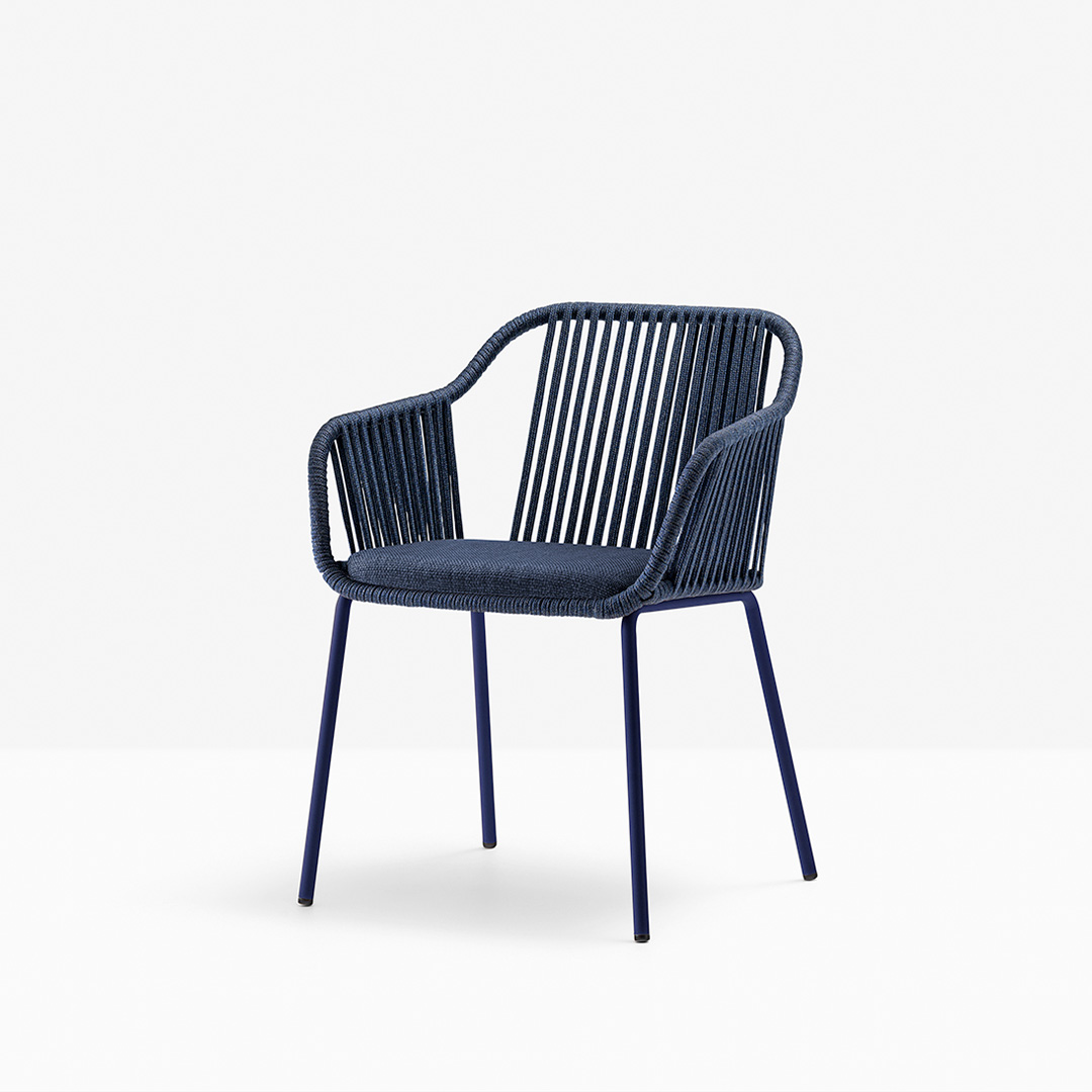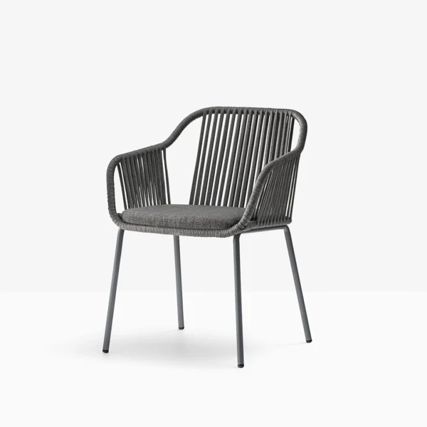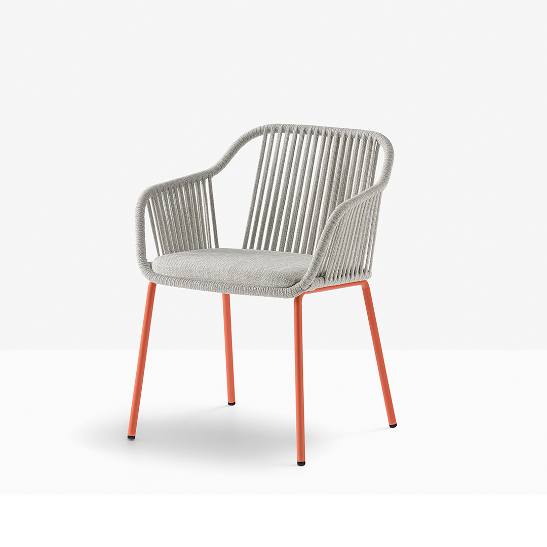 Η Babila Twist είναι η εξωτερική εκδοχή της εμβληματικής συλλογής Babila, σχεδιασμένη από τον Odo Fioravanti. Διαθέτει μεταλλικό σκελετό και χειροποίητα πλεγμένη πλάτη από κορδόνι πολυπροπυλενίου, που της προσδίδουν μια ανάλαφρη, αλλά έντονα χειροποίητη αισθητική. Το αφράτο μαξιλάρι καθίσματος προσφέρει υψηλή άνεση, ιδανική για εξωτερικούς χώρους φιλοξενίας.
