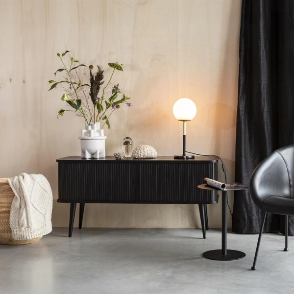 Ένας μπουφές με δύο συρόμενες πόρτες, δύο γυάλινες ραφιέρες και πολλή κομψότητα. Ο Barbier της Zuiver δεν ξεχωρίζει μόνο για το design του, αλλά και για τη λειτουργικότητά του.