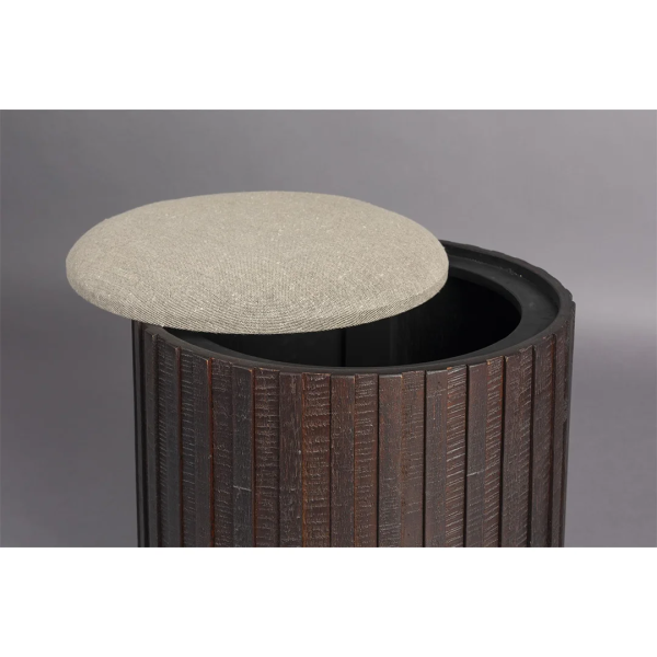 Με το Bay Pouf της Dutchbone, φέρνετε στο σπίτι σας ένα έπιπλο που συνδυάζει στυλ και λειτουργικότητα. Κατασκευασμένο από ανακυκλωμένο Ξύλο τεκ απόχρωσης καρυδιάς με ρουστίκ φινίρισμα, το ραβδωτό μοτίβο προσδίδει αυθεντική, vintage αισθητική. Το ιδιαίτερο στοιχείο του είναι το αφαιρούμενο κάθισμα σε ανοιχτό χρώμα, που δημιουργεί όμορφη αντίθεση με τη βάση. Το κάθισμα ανοίγει και αποκαλύπτει αποθηκευτικό χώρο, ιδανικό για να διατηρείτε το χώρο τακτοποιημένο. Ιδανικό για να ξεκουράζετε τα πόδια σας το βράδυ, το Bay Pouf προσθέτει ζεστασιά και άνεση σε κάθε δωμάτιο.