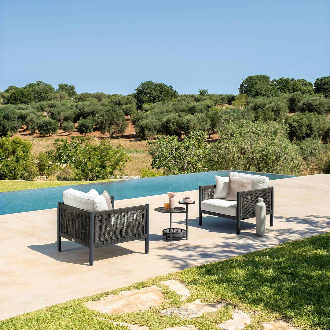 Ιδανική για χώρους χαλάρωσης, η πολυθρόνα Dolcevita Living αποπνέει την ανεμελιά των καλοκαιρινών βραδιών. Τα μπράτσα και η πλάτη της χαρακτηρίζονται από την πυκνή πλέξη σχοινιών, που αναδεικνύει την υφή του ξύλου.