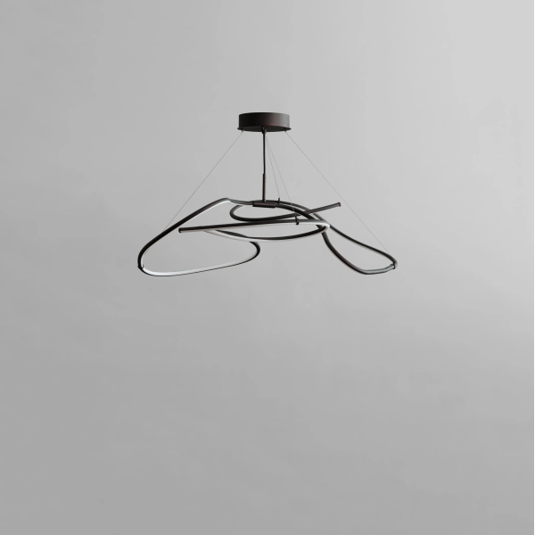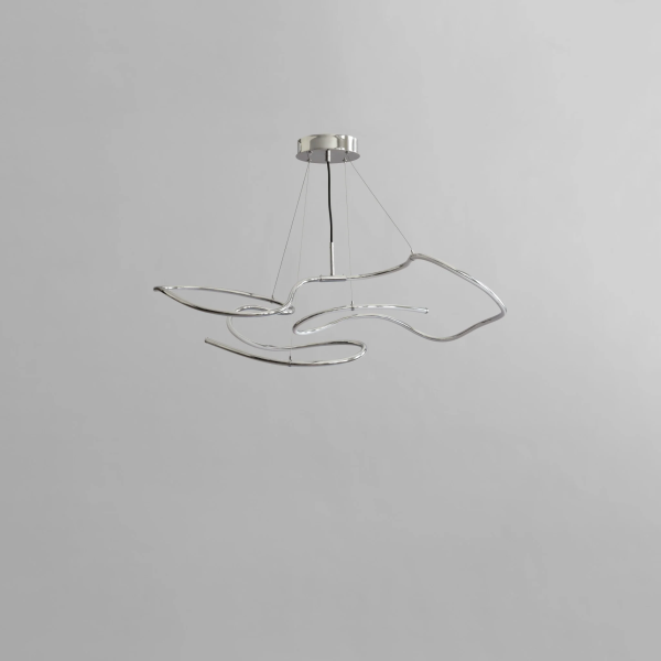 Το Ghost Chandelier είναι ένα γλυπτικό φωτιστικό οροφής με κυρτούς λευκούς ακρυλικούς σωλήνες και ενσωματωμένο LED θερμού φωτός (2400K). Διαθέσιμο σε τρία φινιρίσματα (Neon, Burned Black, Chrome) και δύο μεγέθη, προσφέρει μοναδικό, ατμοσφαιρικό φωτισμό και καλλιτεχνική παρουσία σε κάθε χώρο.