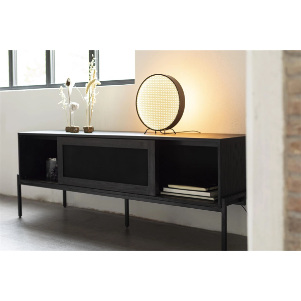 Με μια πρώτη ματιά, ο μπουφές Hardy Oak εντυπωσιάζει με τη φυσική δρύινη επένδυση και τη λεπτή μεταλλική του βάση. Αν όμως τον προσέξετε λίγο καλύτερα, θα δείτε το χαρακτηριστικό του γνώρισμα: συρόμενες πόρτες με λεπτό μεταλλικό πλέγμα, που αποκαλύπτουν διακριτικά τα περιγράμματα των αντικειμένων στο εσωτερικό.