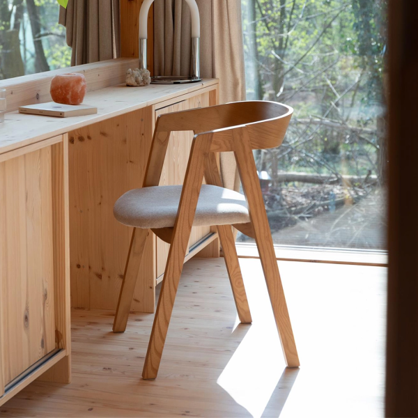 Αυτό το κομψό έπιπλο προσθέτει αβίαστα μια ζεστή πινελιά στην τραπεζαρία. Τα πόδια από μασίφ Ξύλο φράξου ενσωματώνονται αρμονικά με την τέλεια καμπυλωτή πλάτη, δημιουργώντας μια ενιαία και εκλεπτυσμένη σιλουέτα. Σε συνδυασμό με το επενδεδυμένο κάθισμα, προσφέρει εξαιρετική άνεση.