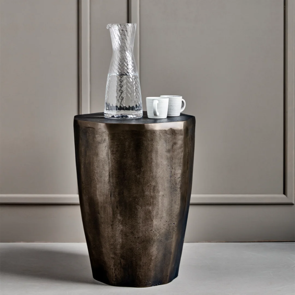 Αυτό το χειροποίητο βοηθητικό τραπέζι από χυτό αλουμίνιο με φινίρισμα σε antique brass προσφέρει διαχρονικό και ευέλικτο σχεδιασμό. Ιδανικό ως τραπεζάκι σαλονιού ή κομοδίνο, προσθέτει μια πινελιά κομψότητας σε κάθε χώρο.