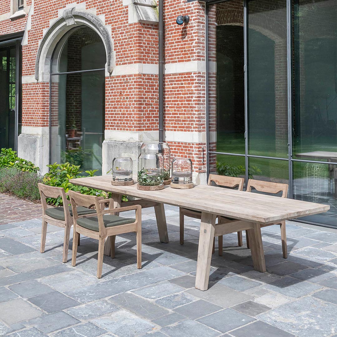 Το τραπέζι εξωτερικού χώρου Mia αποπνέει μια αίσθηση λιτής κομψότητας μέσα από τον καθαρό του σχεδιασμό και το ζεστό φυσικό ξύλο τικ. Με στιβαρή κατασκευή και απλές γραμμές, το Mia προσφέρει έναν φιλόξενο και λειτουργικό χώρο για γεύματα και στιγμές χαλάρωσης σε κάθε υπαίθριο περιβάλλον.