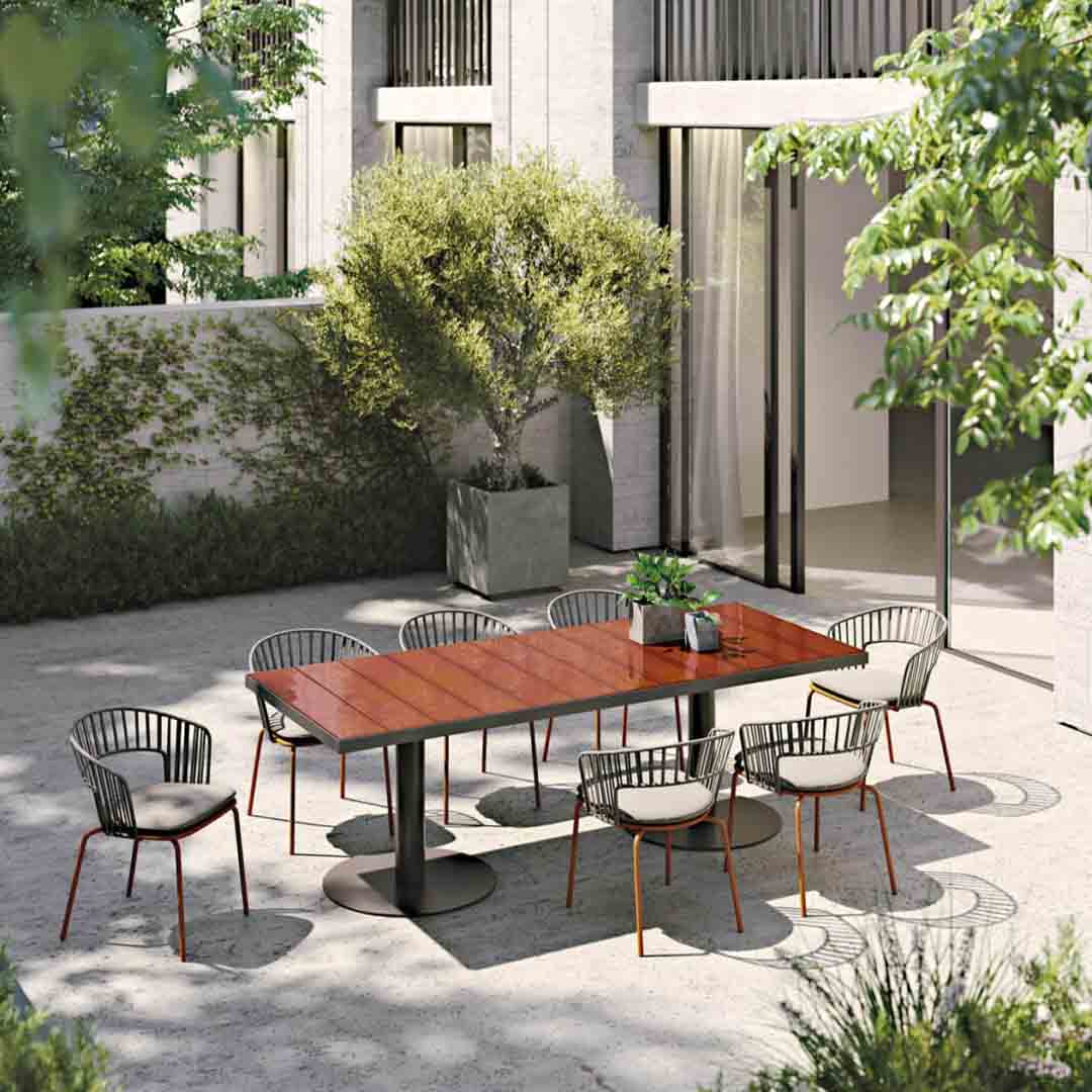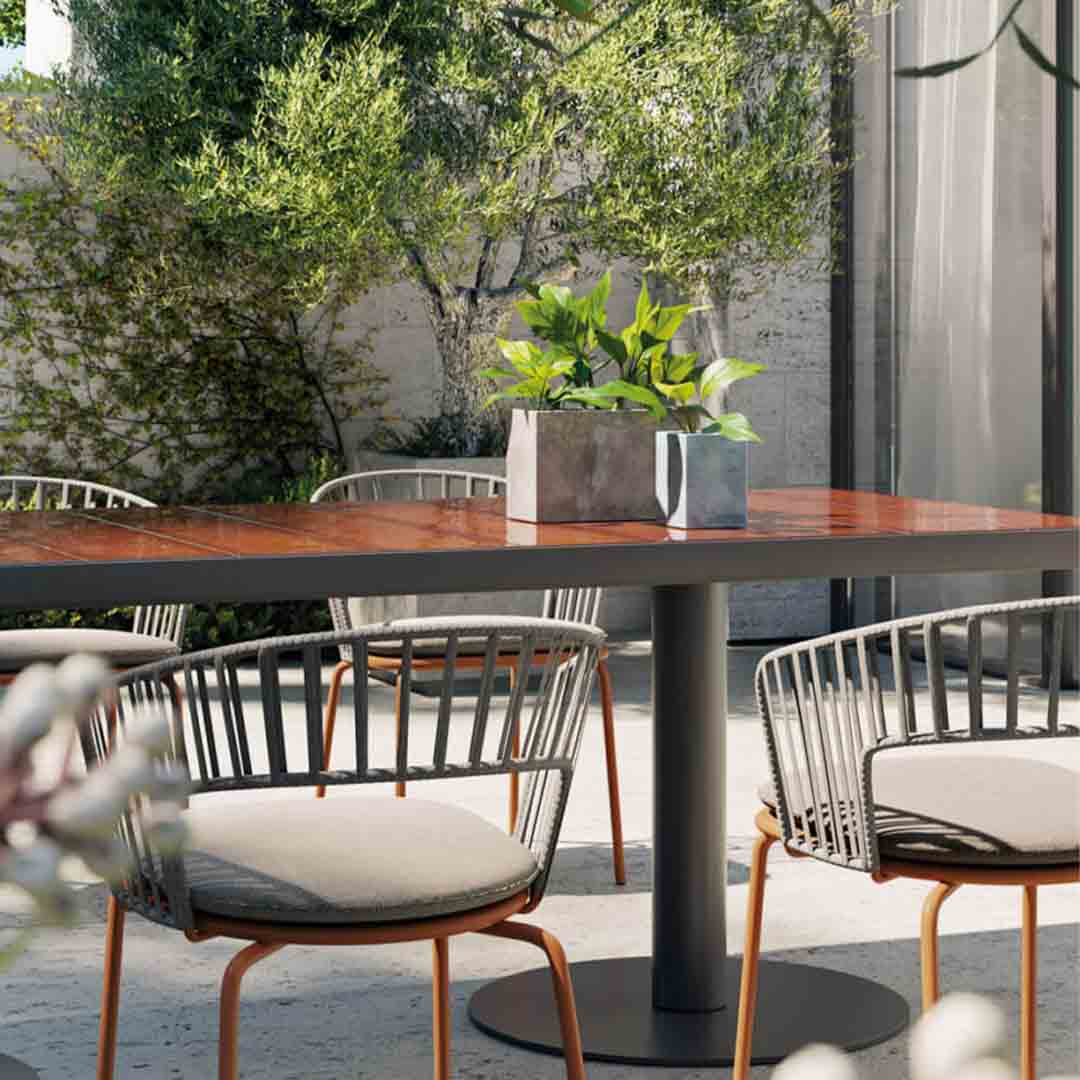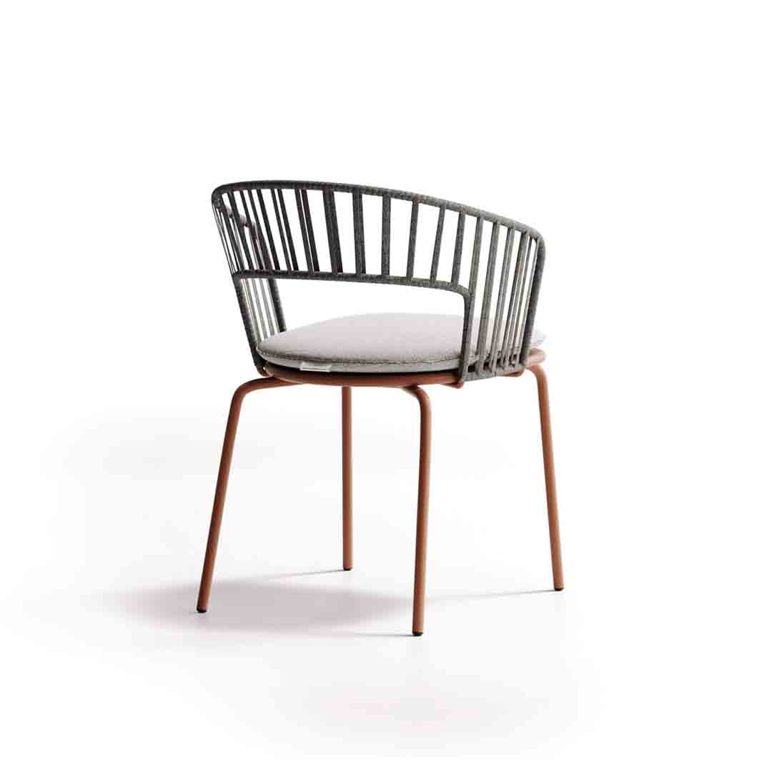 Η Onda ενσαρκώνει την αίσθηση της άνετης κομψότητας. Με καμπύλες γραμμές και αγκαλιαστή φόρμα, προσφέρει τον ιδανικό συνδυασμό σχεδίου και άνεσης. Ο σκελετός από βαμμένο αλουμίνιο είναι επενδυμένος με ανθεκτικό συνθετικό σχοινί, ενώ το μαξιλάρι στο κάθισμα εξασφαλίζει επιπλέον άνεση και στήριξη.