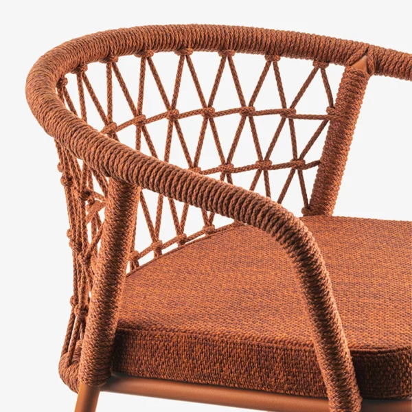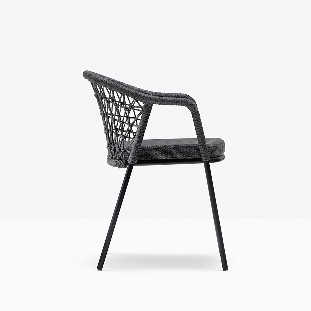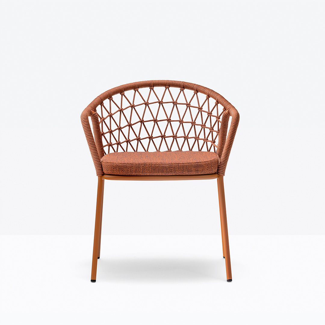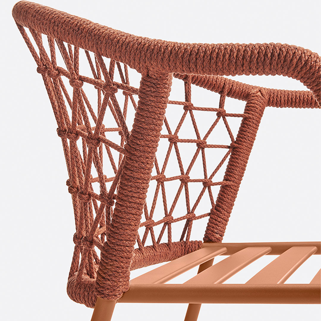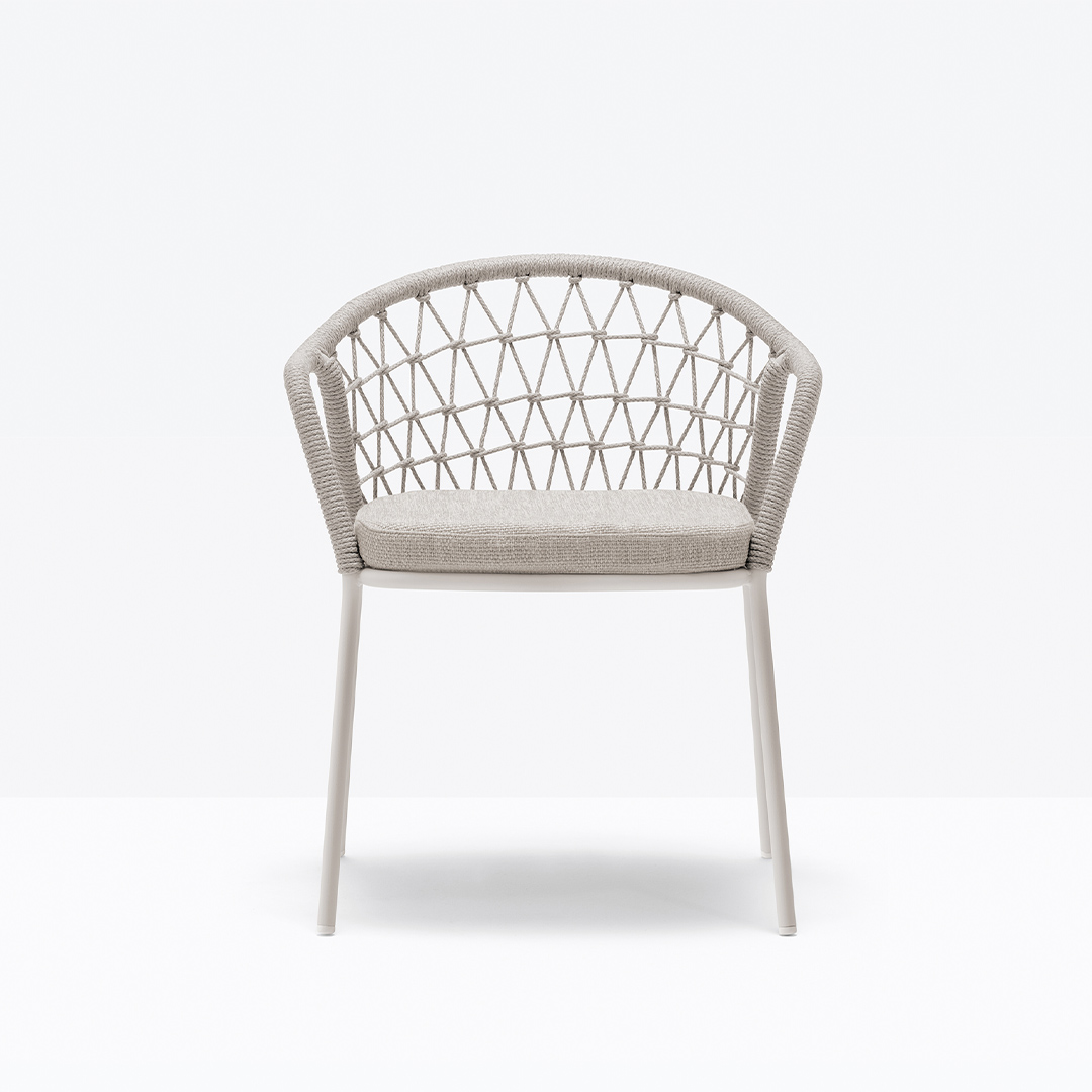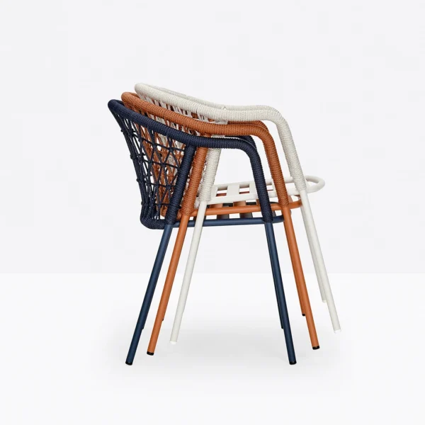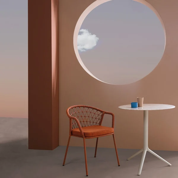 Η Panarea αντλεί έμπνευση από τα μεσογειακά τοπία και προσφέρει μια εκλεπτυσμένη και άνετη πρόταση καθίσματος για εξωτερικούς χώρους φιλοξενίας. Ο σκελετός της είναι από ηλεκτροστατικά βαμμένο ατσάλι και η πλάτη είναι χειροποίητα πλεγμένη στην Ιταλία με κορδόνι πολυπροπυλενίου, δημιουργώντας μια ανάλαφρη και ταυτόχρονα στιβαρή αισθητική.