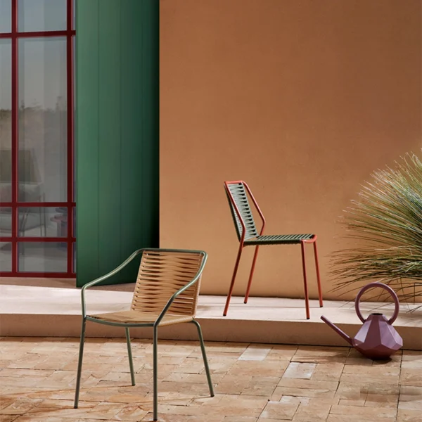 Η στοιβαζόμενη κατασκευή και η ανθεκτικότητα στην υπεριώδη ακτινοβολία την καθιστούν ιδανική επιλογή για καφετέριες, βεράντες και χώρους εστίασης με έντονη χρήση.