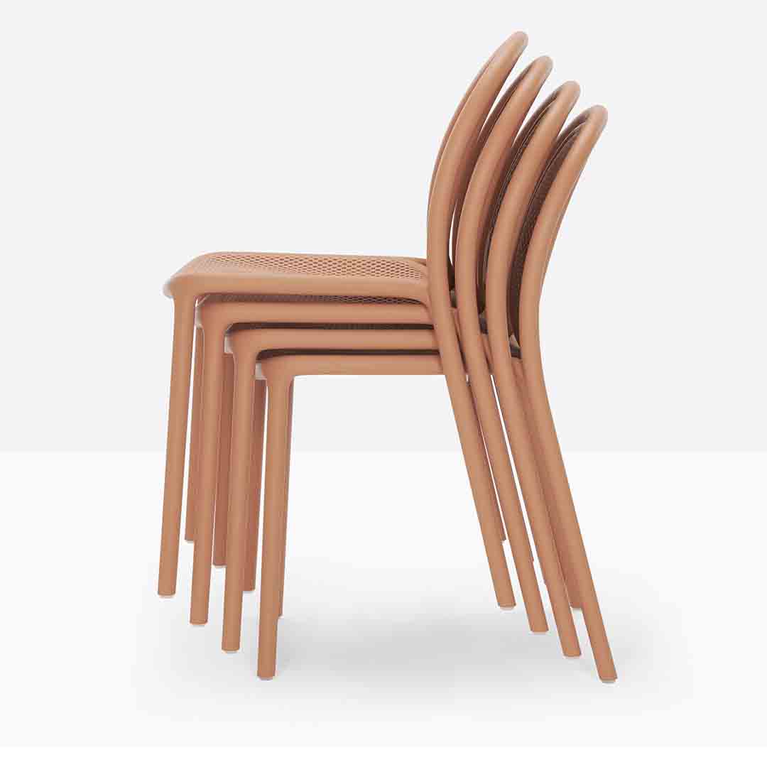 Ιδανική για εσωτερικούς και εξωτερικούς επαγγελματικούς χώρους φιλοξενίας, είναι στοιβαζόμενη, ανθεκτική στην υπεριώδη ακτινοβολία και διατίθεται με προαιρετικό μαξιλάρι καθίσματος.