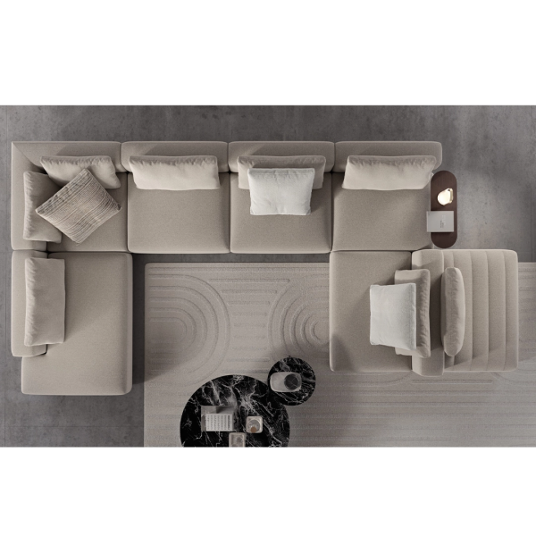 Όπως τα κομμάτια ενός παζλ που εφαρμόζουν άψογα μεταξύ τους, το Reverso αποτελεί ένα αρθρωτό σύστημα που σχεδιάστηκε με απόλυτη ακρίβεια για να προσφέρει μέγιστη άνεση. Κάθε μονάδα εξυπηρετεί διαφορετική ανάγκη — μια chaise longue για στιγμές χαλάρωσης, ένας ευρύχωρος κεντρικός καναπές για όλη την οικογένεια, και μια πολυθρόνα στρατηγικά τοποθετημένη ώστε να δημιουργεί ένα ήσυχο σημείο εργασίας ή ανάγνωσης.