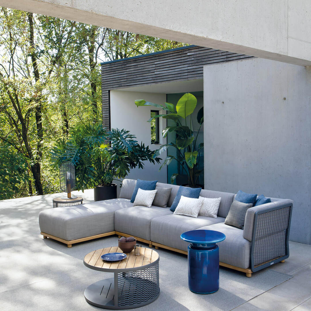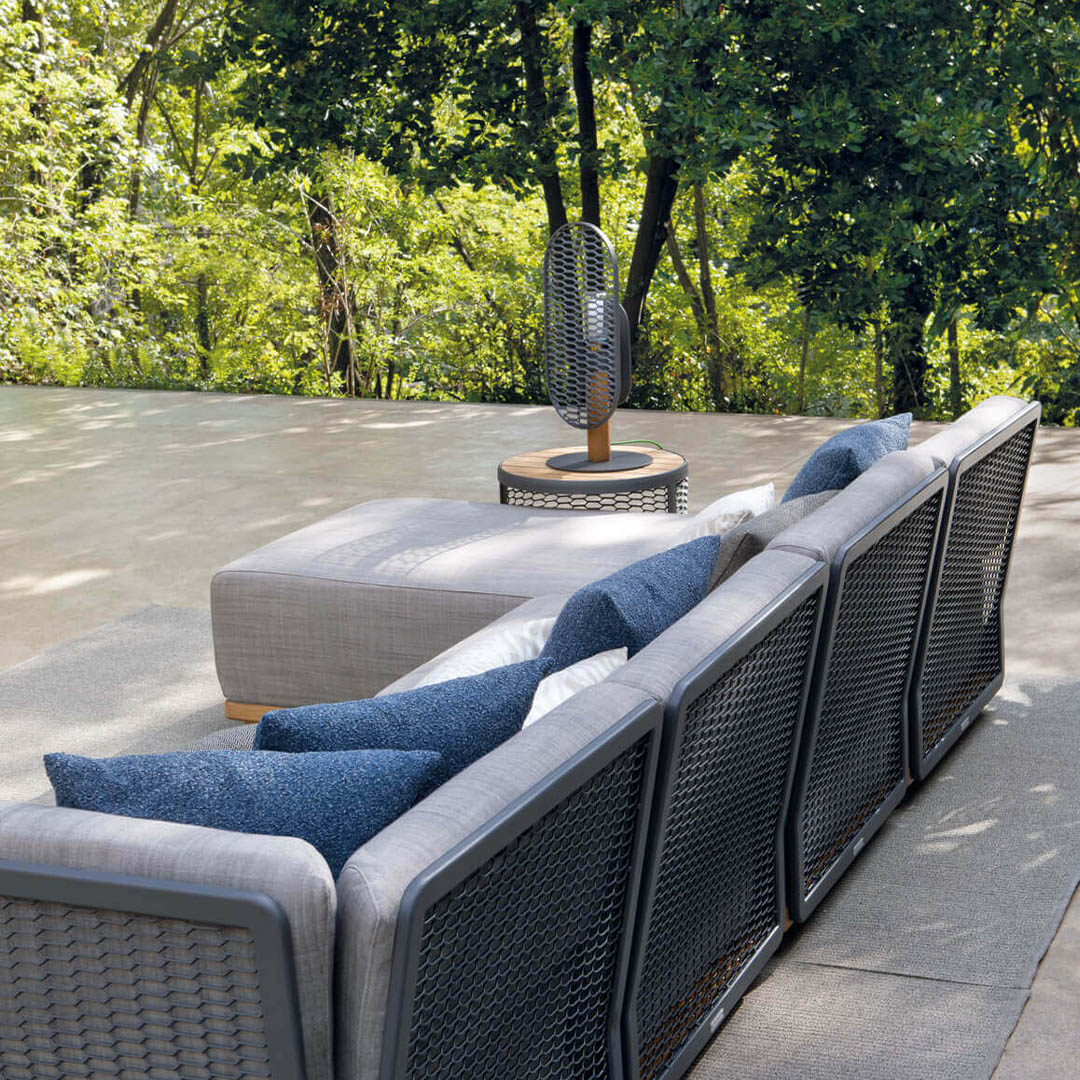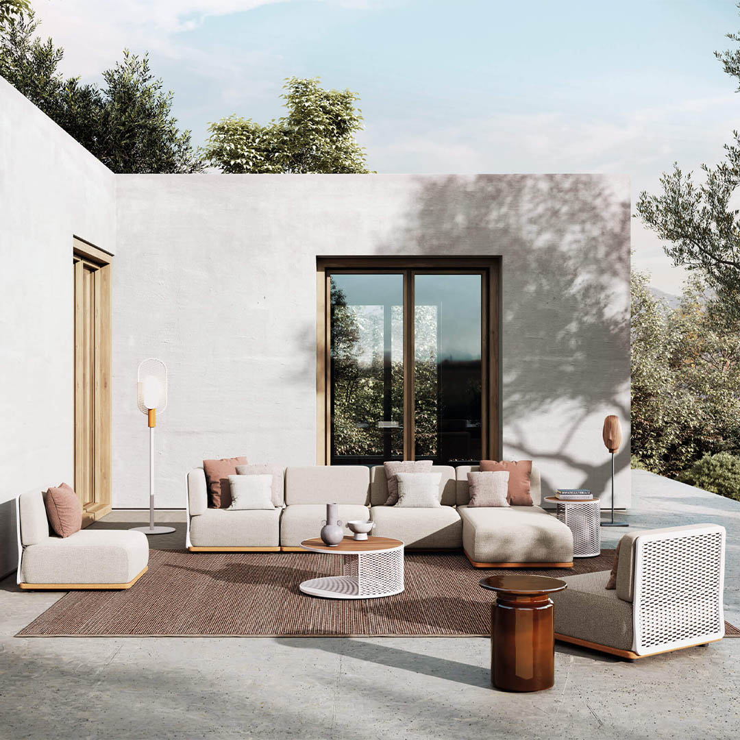 Πρωταγωνιστές αυτής της συλλογής είναι οι αρθρωτοί καναπέδες, τα βοηθητικά τραπέζια που εναρμονίζονται με το περιβάλλον, τα lounges και ο σωστός φωτισμός.
