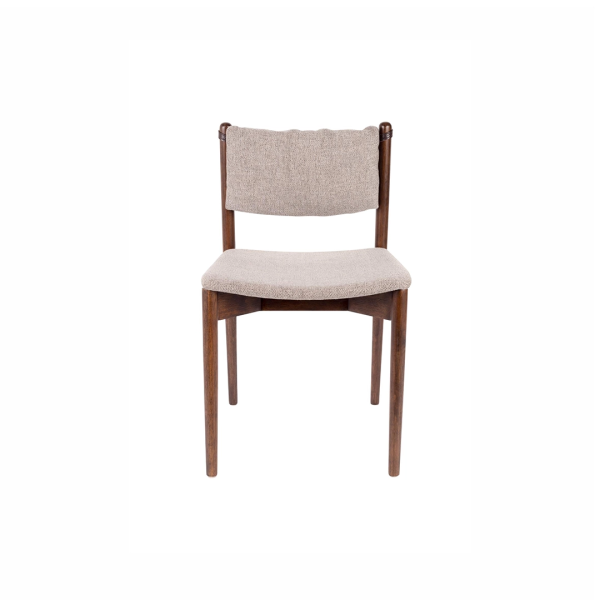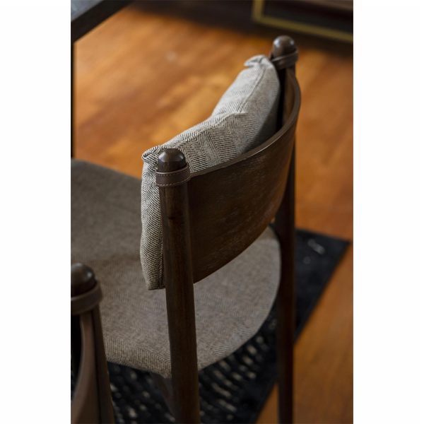 Κατασκευασμένη από μασίφ Ξύλο καουτσουκόδεντρου και ακασίας με ζεστό, σκούρο καφέ φινίρισμα, η καρέκλα Torrance με το ανοιχτό γκρι επενδεδυμένο κάθισμα και πλάτη θυμίζει τη ζεστή αίσθηση της δεκαετίας του ’60. Οι σύγχρονες λεπτομέρειες από δερματίνη PU προσθέτουν μια μοντέρνα πινελιά — ιδανική για ζεστές και οικείες στιγμές.