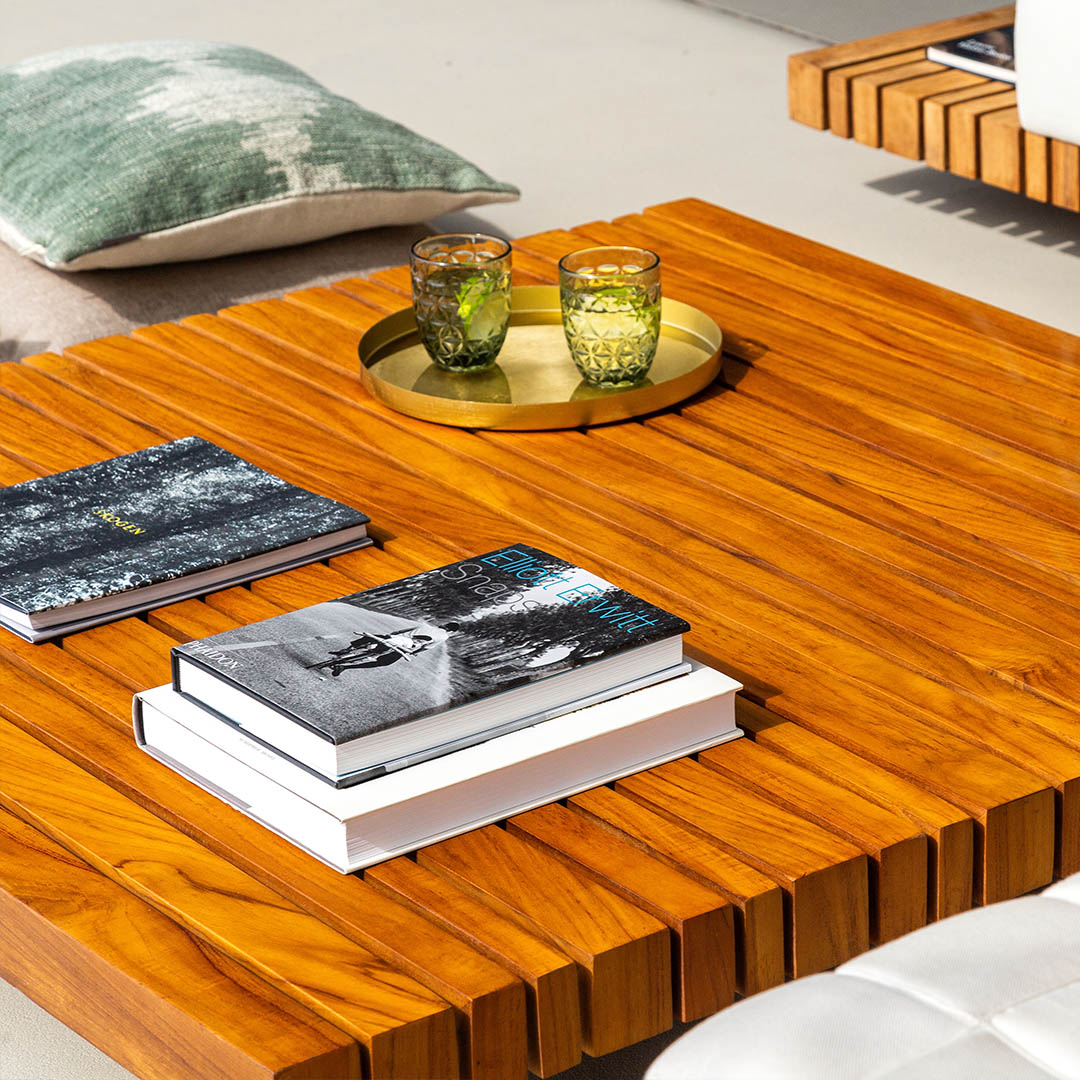Το Touch τραπεζάκι διαθέτει ραβδωτή επιφάνεια από teak, που προσφέρει φυσική υφή και ζεστασιά, ενώ η στιβαρή βάση από αλουμίνιο προσδίδει μοντέρνο και διαχρονικό χαρακτήρα. Ιδανικό για εξωτερικούς χώρους, όπως κήπους, βεράντες και patios, συνδυάζει ανθεκτικότητα με κομψή αισθητική για καθημερινή χρήση όλο το χρόνο.