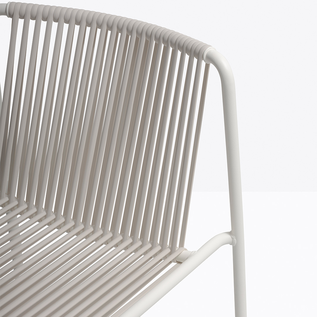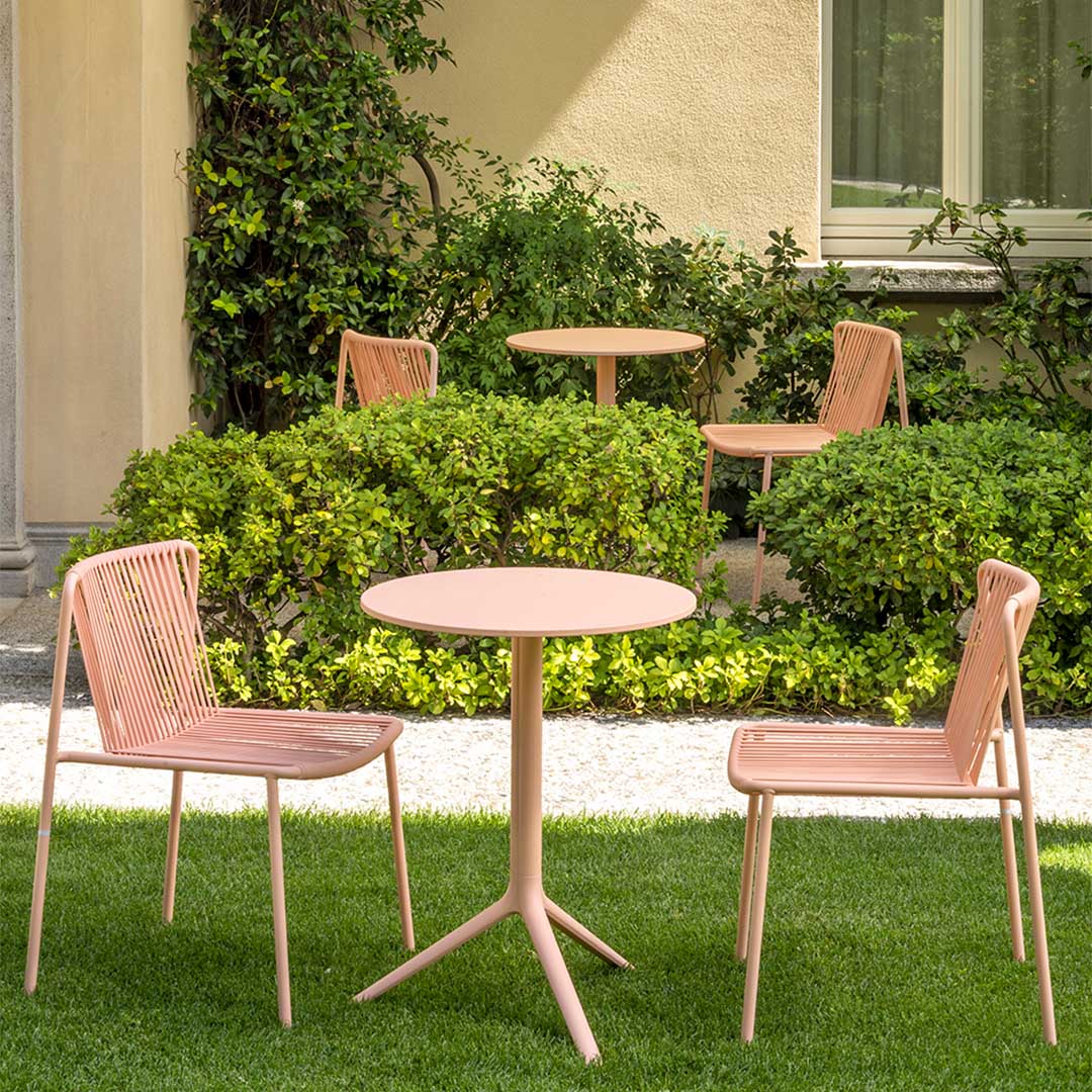 Η Tribeca επανερμηνεύει τις κλασικές καρέκλες εξωτερικού χώρου της δεκαετίας του ’60, με μοντέρνα αισθητική και σύγχρονη τεχνολογία. Διαθέτει μεταλλικό σκελετό ηλεκτροστατικής βαφής και πλάτη/κάθισμα από κορδόνι PVC με ενίσχυση από νάιλον, προσφέροντας ελαφρότητα, άνεση και υψηλή αντοχή.