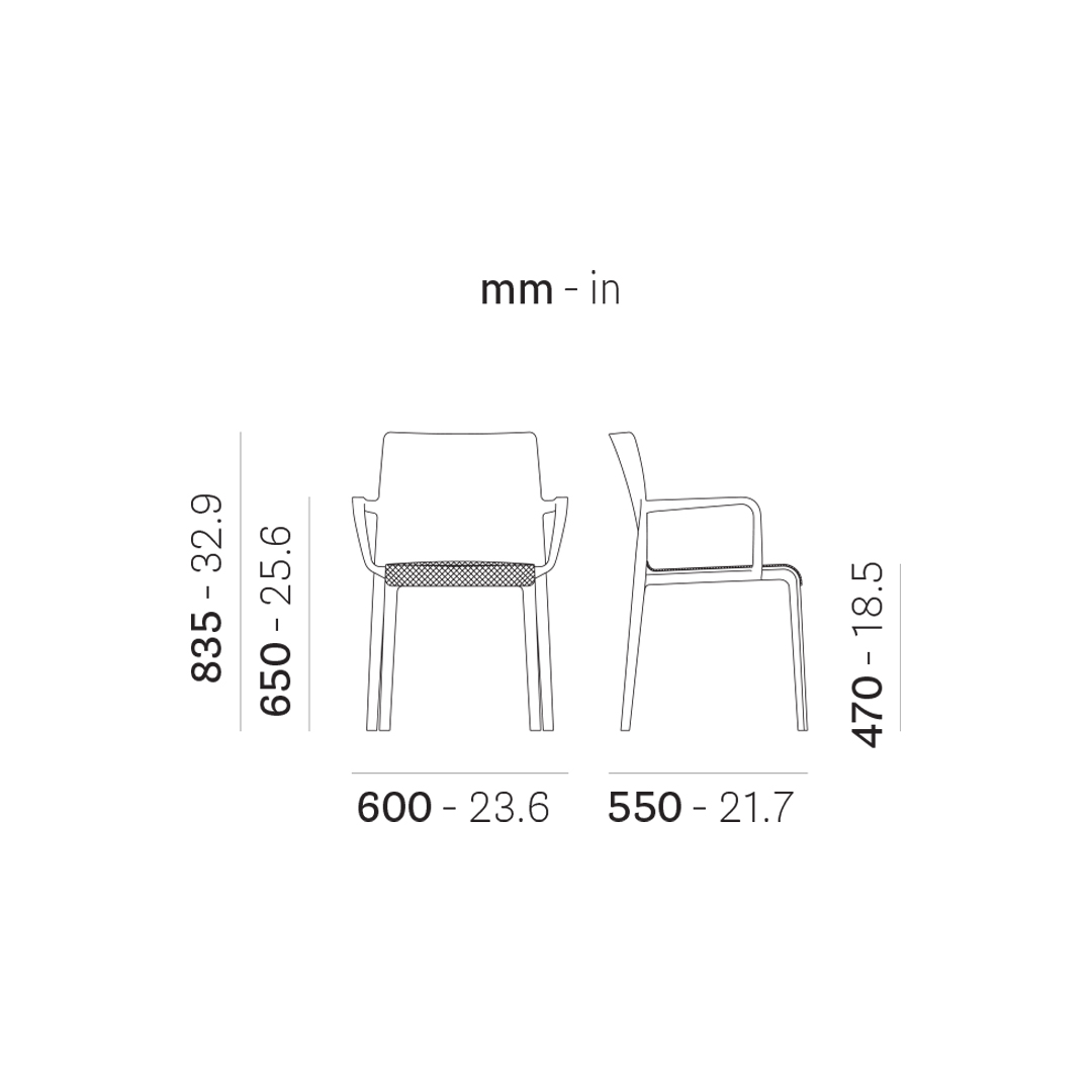 Ανθεκτική στην υπεριώδη ακτινοβολία και στοιβαζόμενη, είναι κατάλληλη για εσωτερικούς και εξωτερικούς χώρους, όπως καφέ, εστιατόρια και μοντέρνους χώρους φιλοξενίας.