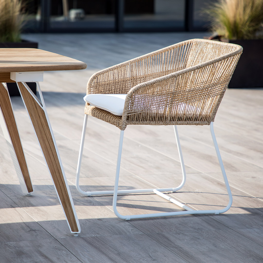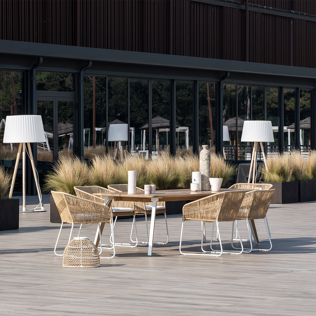 Η καρέκλα Miyako Weaving συνδυάζει σύγχρονο σχεδιασμό με παραδοσιακή τεχνική πλέξης, προσφέροντας μια εκλεπτυσμένη λύση καθίσματος για επαγγελματικούς εξωτερικούς χώρους φιλοξενίας. Η εργονομική της κατασκευή και η χειροποίητη πλέξη προσφέρουν άνεση και αισθητική, καθιστώντας την ιδανική για ξενοδοχεία, εστιατόρια και lounge περιοχές θερέτρων.
