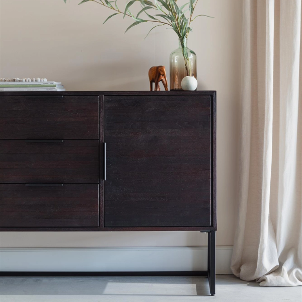 Ο μπουφές Webster High αποτελεί την ιδανική ένωση βιώσιμων υλικών και διαχρονικού σχεδιασμού. Κατασκευασμένος από ανακυκλωμένο Ξύλο teak με πλούσια σοκολατί απόχρωση και στηριγμένος σε στιβαρά μεταλλικά πόδια, προσδίδει κομψότητα και οικολογική νότα στον χώρο σας. Το ιδιαίτερο μοτίβο του teak ενισχύει την αισθητική, καθιστώντας τον έναν εντυπωσιακό πρωταγωνιστή στο σαλόνι ή την τραπεζαρία.