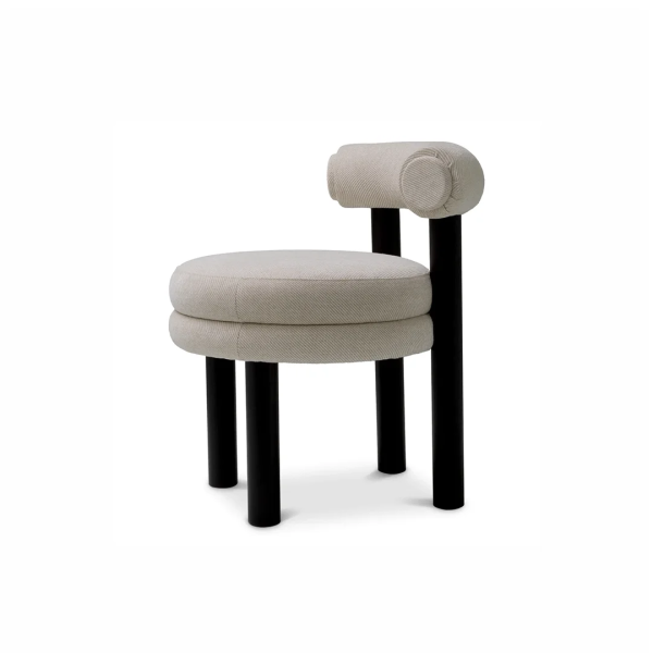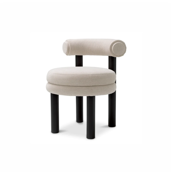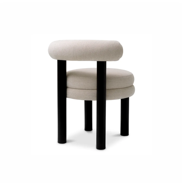 Ζήστε τη γοητεία της καρέκλας τραπεζαρίας Eichholtz Zoey, έναν αρμονικό συνδυασμό χειροτεχνίας και σύγχρονης κομψότητας. Αυτό το εμβληματικό κομμάτι, διακοσμημένο με πολυτελές φινίρισμα Fisher Sand και αντίθετα μαύρα ξύλινα πόδια, αποτελεί πρότυπο διαχρονικής κομψότητας.
